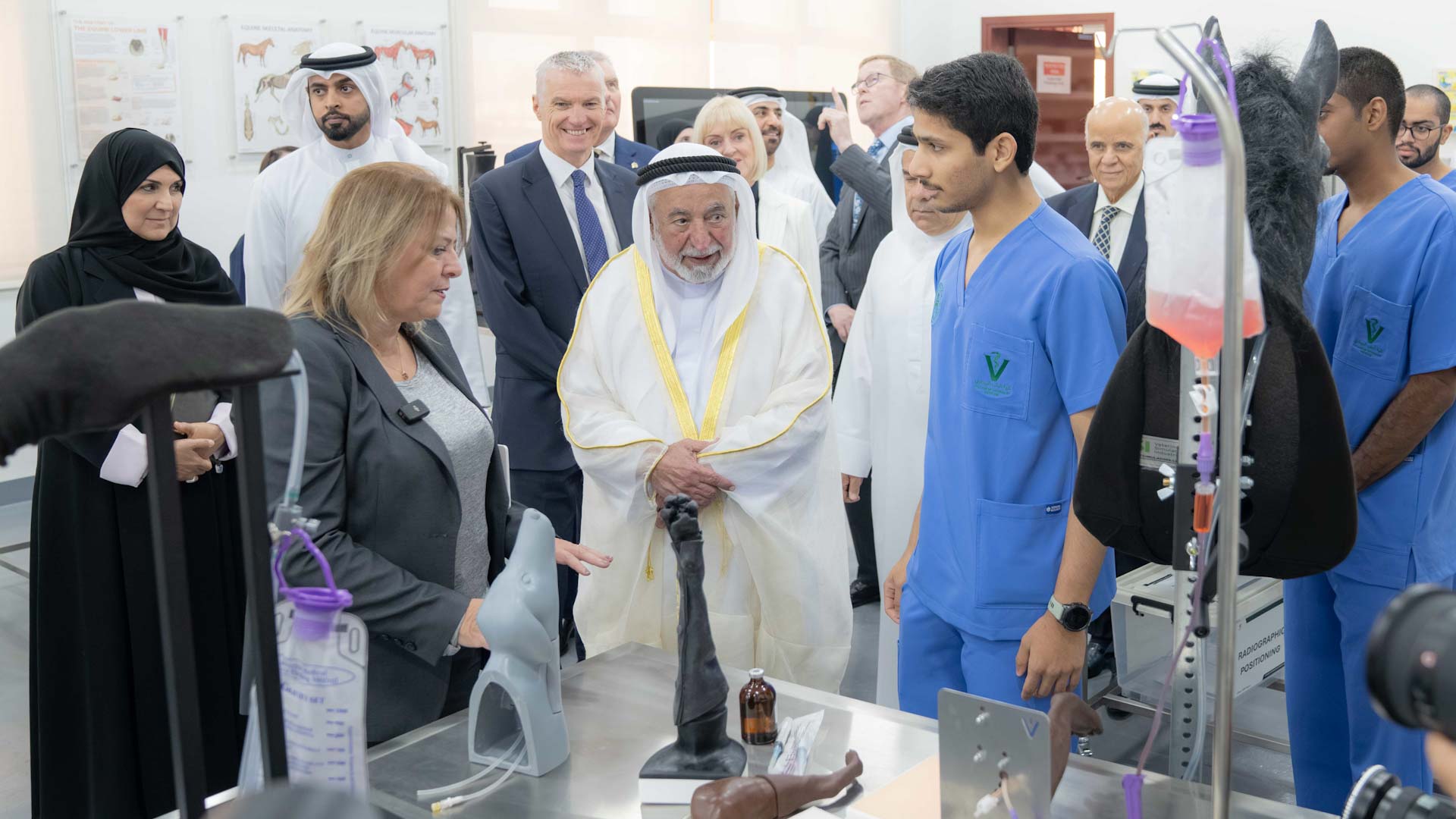 بعدها تفضل صاحب السمو رئيس جامعة الذيد بقص شريط افتتاح مختبرات كلية الطب البيطري مطلعاً سموه على ما تحويه المختبرات من تجهيزات علمية متقدمة وأجهزة تدريب حديثة، تشمل مختبرات التشريح والمحاكاة وعلم الأحياء الدقيقة والتشخيص البيطري.