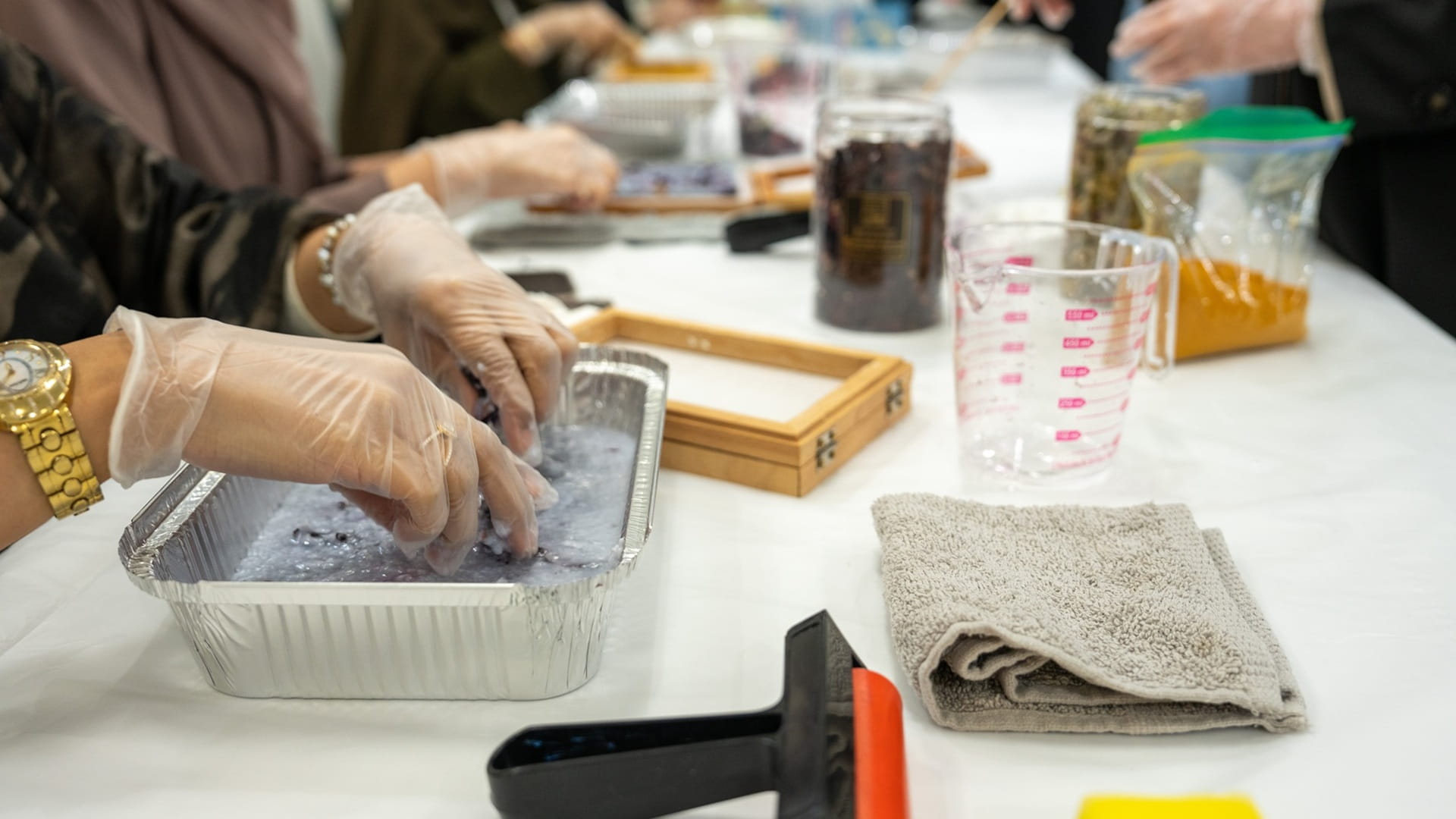 وتعرّفت المشاركات، خلال الورشة، على المراحل الأساسية لإعادة تدوير الورق وصناعته يدوياً واكتسبن معرفة عملية حول دمج العناصر الطبيعية في إنتاج أوراق فنية جديدة تجمع بين البعد البيئي والجمالي، في تجربة تعزز الوعي بالحرف المستدامة وأهمية توظيف الموارد المحلية في الابتكار الإبداعي.