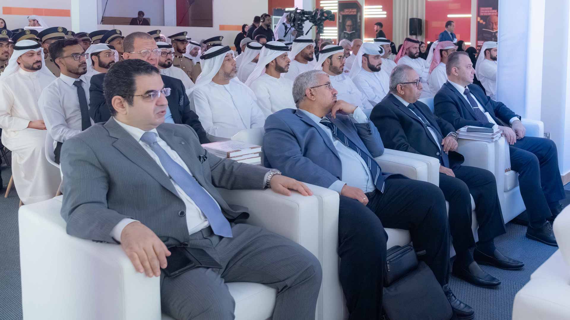 وشارك في الجلسة الحوارية كل من القاضي الدكتور محمد عبيد الكعبي رئيس دائرة القضاء، والمستشار الدكتور صلاح الحمادي رئيس نيابة في النيابة العامة بإمارة الشارقة، والعميد الدكتور محمد خميس العثمني مدير أكاديمية الشارقة للعلوم الشرطية، والدكتور عماد الدين حسين محكم مستقل ومستشار قانوني أكاديمي.