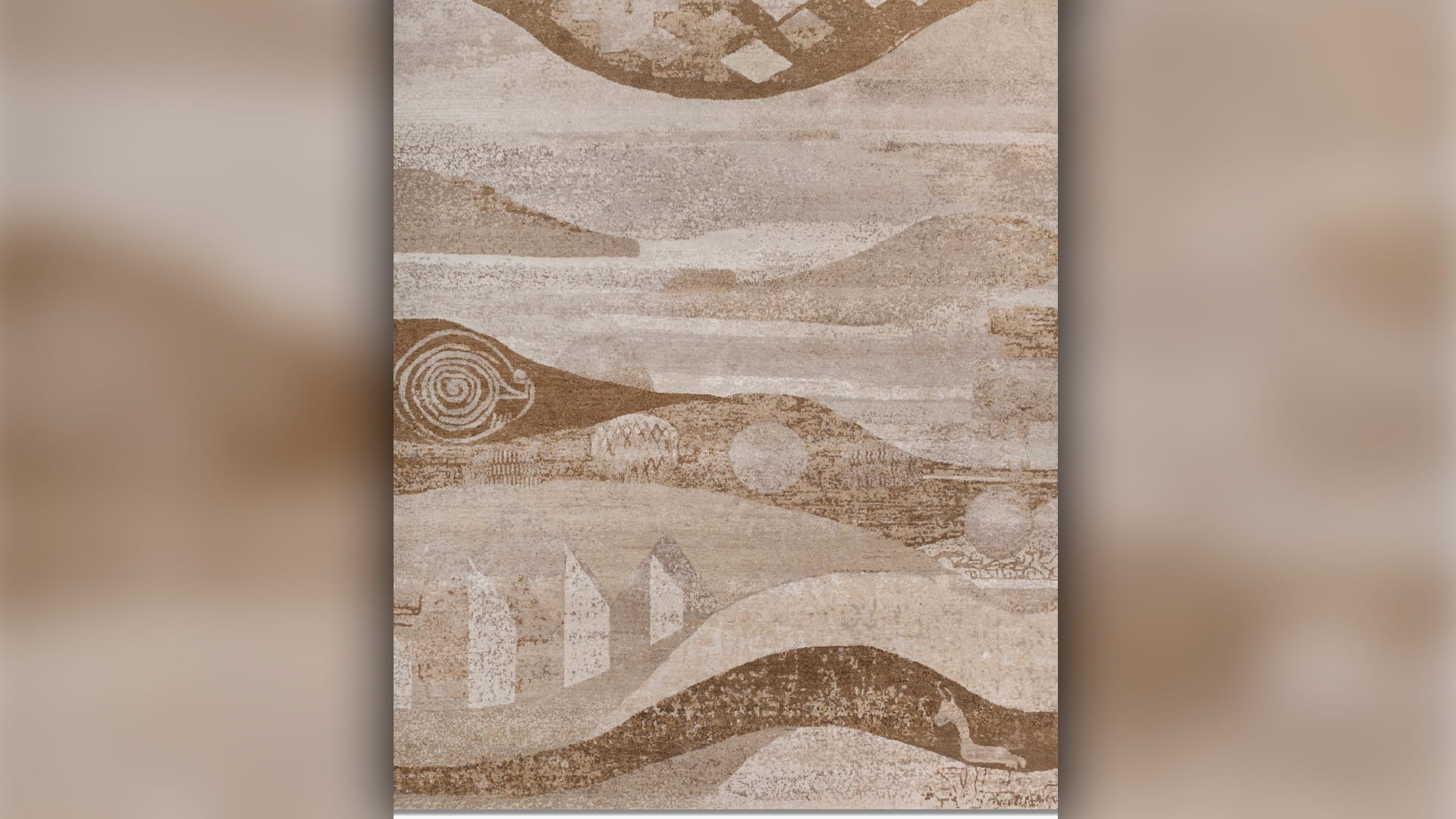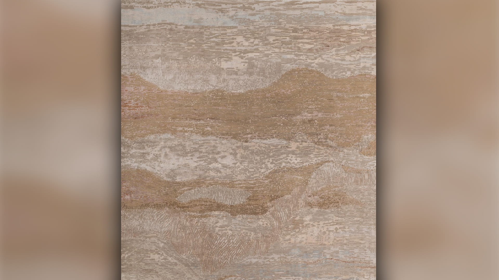 تقدّم هذه السجادة رؤيةً للصحراء كما لو أنّها تُطلّ علينا من وراء حجابٍ من الرمل والضوء، لتستحضر مشهداً يبدو مألوفاً وغامضاً في آنٍ واحد. ترتفعُ المعالم فيها كذكرياتٍ تُفصح بخفوتٍ عن ماضيها البعيد، موحيةً بملاذٍ وظلٍّ وقصصٍ لم تُروَ بعد. ورغم رقتها، فهي آسرةٌ بقوة حضورها، تدعونا إلى تأمّل ما هو خفيّ وما يستتر خلف سكون المشهد. إنها تلتقط جوهر الكثبان وسرّ تحوّلاتها الصامتة، حيث ينساب في كل خيطٍ نسيجيّ صدى الرياح وحركة الرمال، كأنها دعوة للتفكّر في لحظات التغيّر والعبور، وفي معنى الوجود، وفي تلك الطاقة العميقة والشعر الكامن في قلب الصحراء.