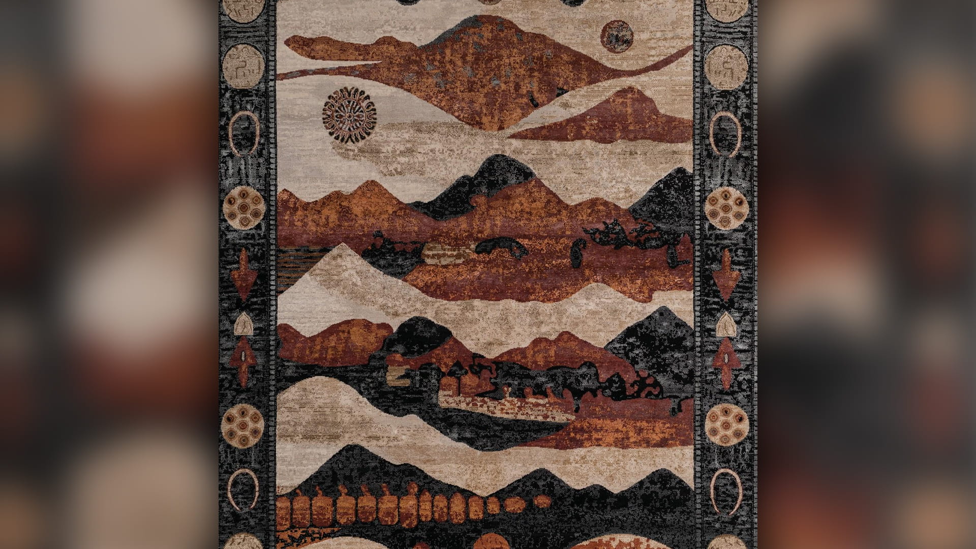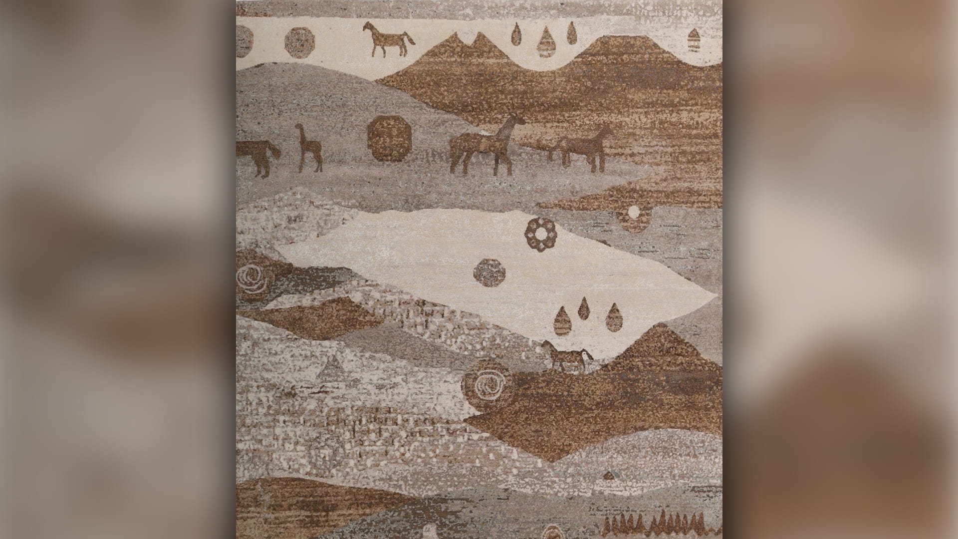 تنبض خيوط هذه السجادة بذاكرةٍ حيّة، كأن الزمن ذاته ينساب عبر تفاصيل نقشها. تتغيّر ملامح الجبل تدريجياً، وتتراجع الأشجار شيئاً فشيئاً، لتفسح المجال أمام زحف الصحراء الهادئ. ويظلّ الجمال حاضراً، لكنه يتبدّى هنا تحت سفح جبلٍ شامخ، في تحوّلٍ لطيف يعيد تشكيل المشهد والحياة معاً، مستحضراً إيقاع الطبيعة وحقيقة فنائها. ومع كل نظرة جديدة، تتكشّف طبقاتٌ أخرى من الحكاية؛ همساتٌ خفيّة وإصرارٌ ناعم للحياة وهي تتشبّث بوجودها في قلب التحوّل المستمر.
