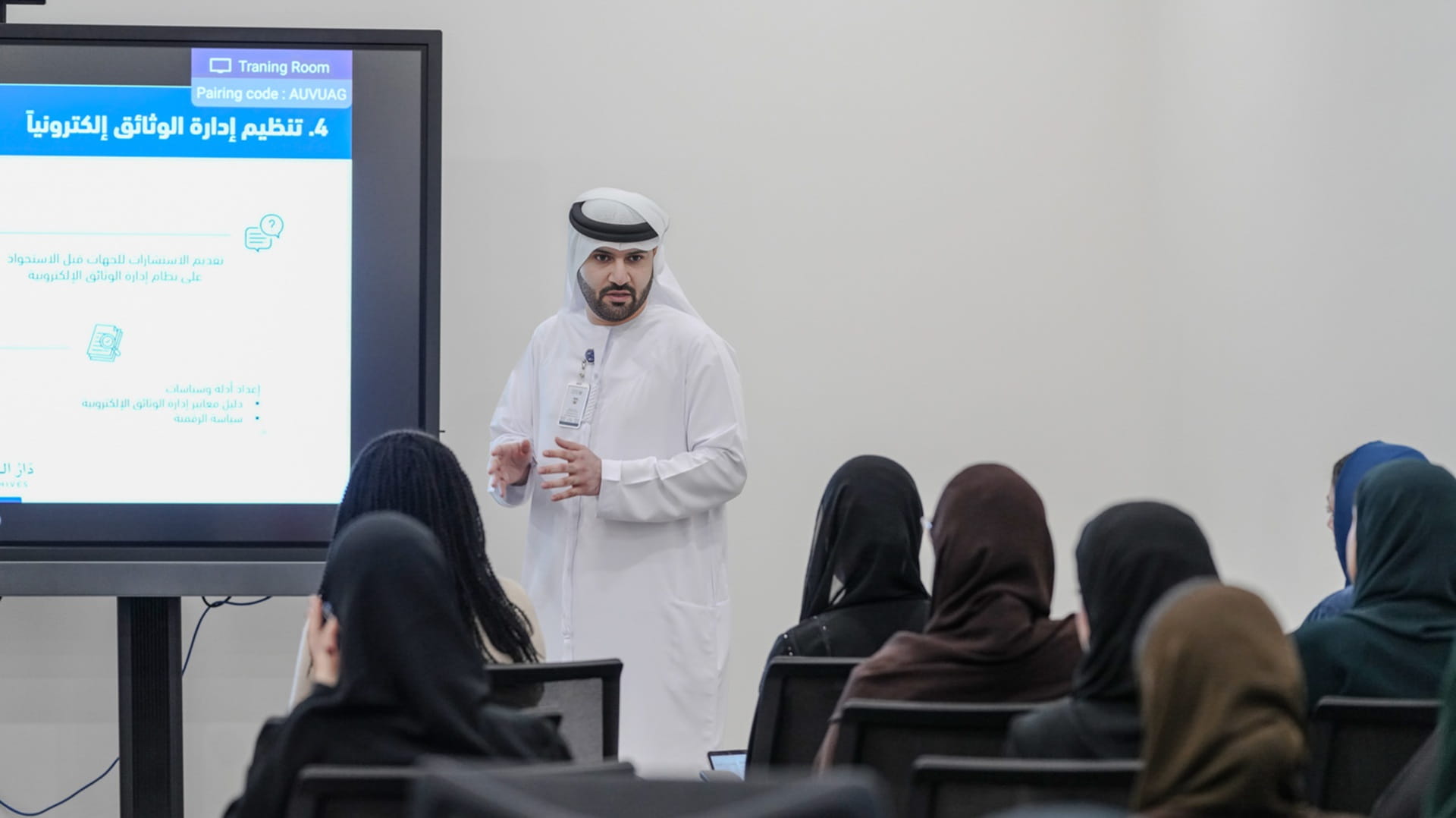 كما اطّلع الطلبة على مشاريع أنظمة إدارة الوثائق الإلكترونية، والحلول المتقدمة في هذا المجال والتي تضمن سهولة الوصول، واستمرارية الحفظ، ورفع كفاءة الخدمات المقدمة للجهات الحكومية والمستفيدين.