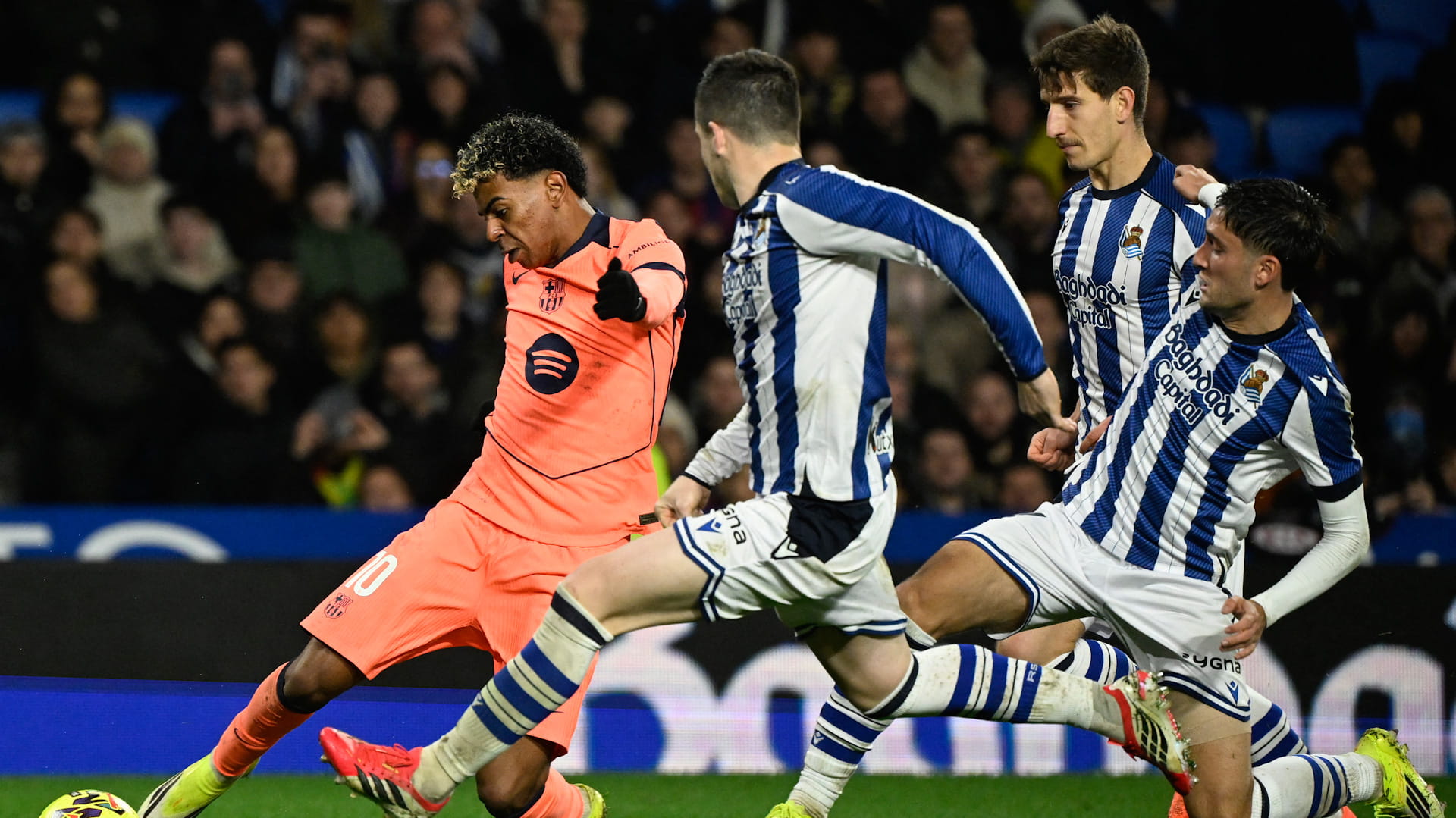 انتهت سلسلة انتصارات برشلونة المتصدر بعد أكثر من شهرين، إثر سقوطه على أرض مضيفه ريال سوسييداد 1-2 في المرحلة 20 من الدوري الإسباني لكرة القدم، ما صب في صالح ريال مدريد ومدربه الجديد ألفارو أربيلوا.