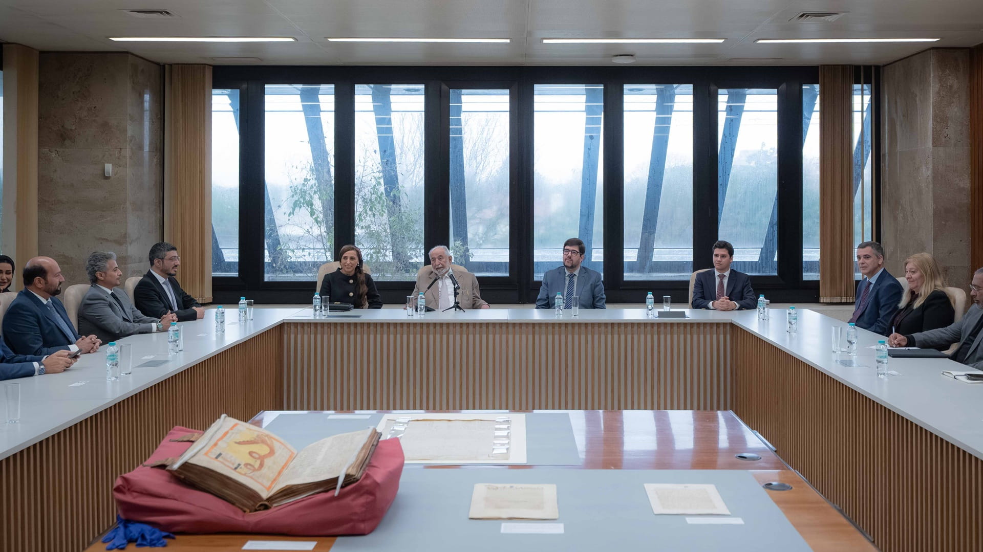 وألقى لويس فيليبي مدير عام الأرشيف الوطني البرتغالي كلمةً، رحب فيها بصاحب السمو الشيخ الدكتور سلطان بن محمد القاسمي، مثمناً جهوده الثقافية والتاريخية، ومعبراً عن سعادته بزيارة سموه إلى الأرشيف، الذي يضم وثائق للجمهورية البرتغالية كبلد، ولكنها تجمع وتتشارك مع البلدان والثقافات الأخرى من خلال محتواها وأحداثها في الفترات المختلفة التي وثقتها المخطوطات والوثائق.