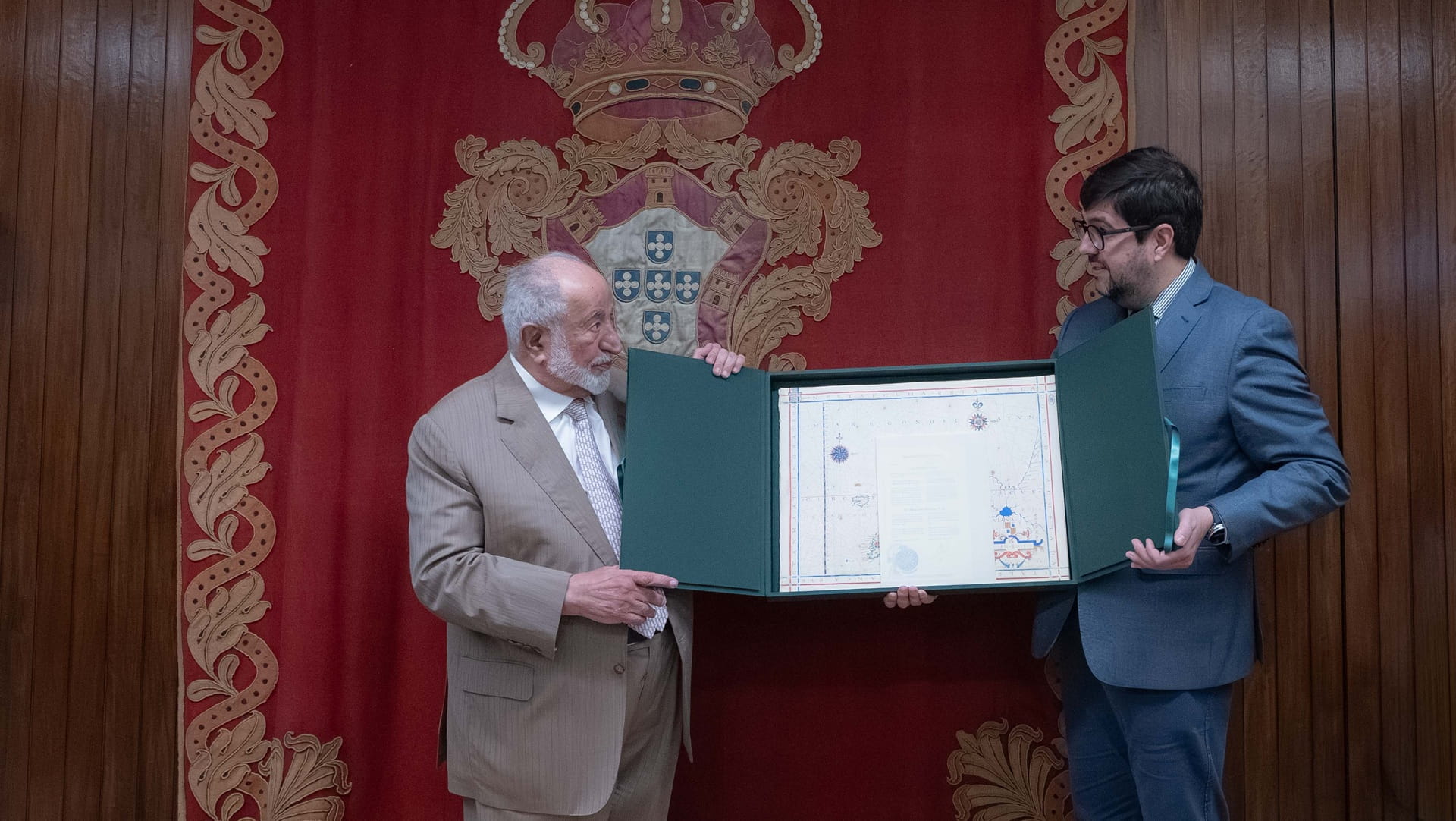 وتلقى سموه من مدير عام الأرشيف الوطني البرتغالي عدداً من الإهداءات، كنسخ أصلية من بعض المخطوطات، وأطلس يتناول مجموعة من الخرائط وتفسيراتها.