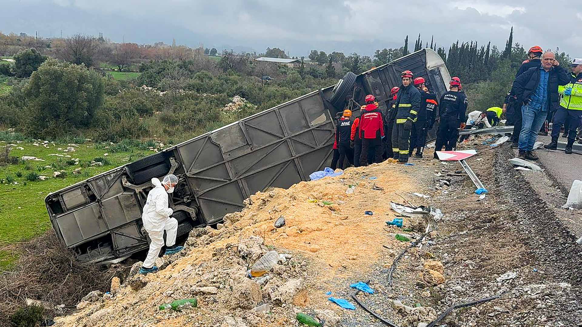 وانقلبت الحافلة التي كانت تنقل 34 راكباً من تكيرداغ (غرب) إلى أنطاليا صباح الأحد عند الساعة 10,20 (7,20 ت غ) على حافة طريق سريع جعلته الأمطار زلقاً، وفق ما أفاد الحاكم.