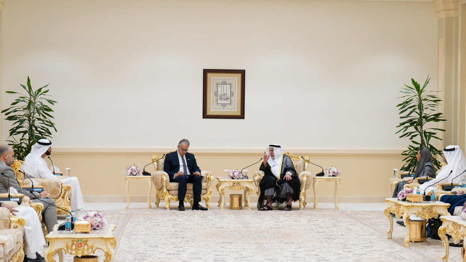 ورحب سموه في بداية اللقاء بمدير عام اليونسكو، متمنياً له التوفيق في مهامه، مشيراً سموه إلى الأدوار المهمة لليونسكو على المستوى العالمي في دعم برامج التربية والعلوم والثقافة، وما تضطلع به من مهام كبيرة في تعزيز وترسيخ العديد من المشروعات المتنوعة في هذه القطاعات الحيوية، التي ترتبط بالتنمية المستدامة والمجتمعية.