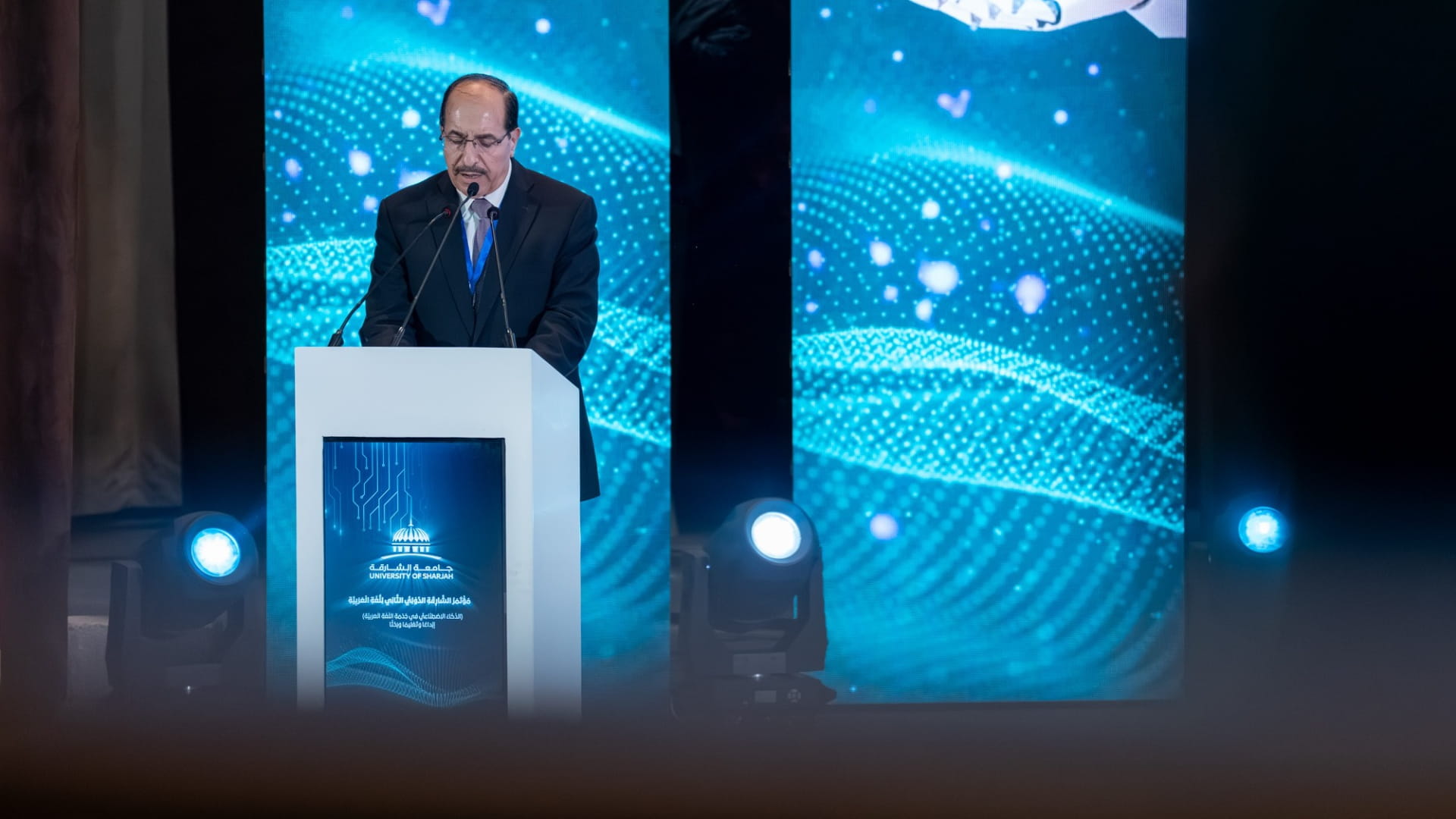 وقال مدير جامعة الشارقة في كلمته مخاطباً اللغة العربية : "فيكِ الكتابُ الذي بالحقِّ قد نزلت آياته فسَمتْ بالعلمِ والعودِ، ثابتةُ الأصلِ لا تُبلى مع الزمنِ مرِنةُ الحرفِ في معنىً وتجديد".