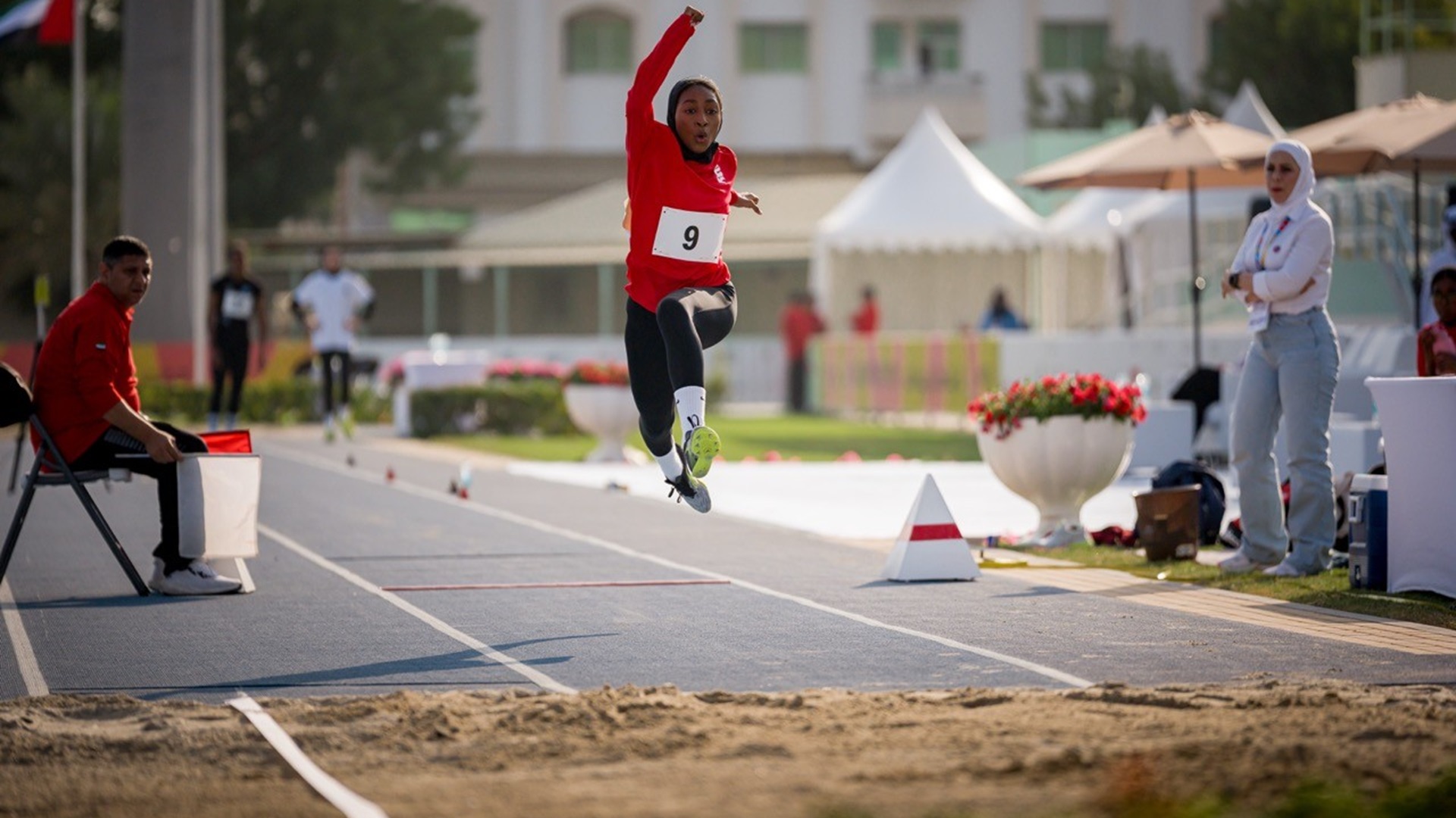 وفي منافسات الوثب الثلاثي، أحرزت الكويتية عائشة وليد لخضر الميدالية الذهبية بقفزة بلغت 11.55 متراً، متفوقة على المصرية مريم محمود مصطفى التي نالت الفضية بقفزة 10.96 متراً، فيما ذهبت البرونزية للعراقية جاوان بهاء الدين حسن من نادي الفتاة الرياضي نينوى بقفزة 10.84 متراً.