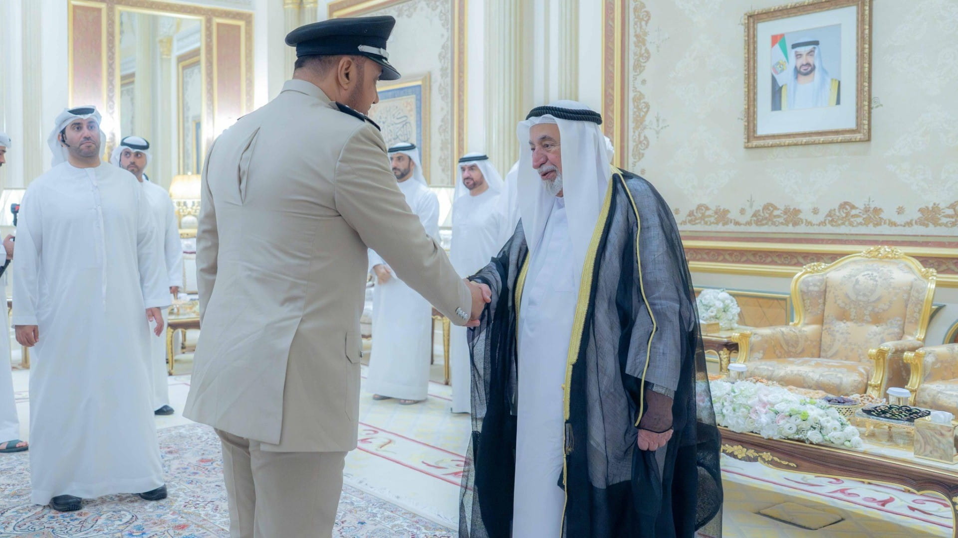 حضر الاستقبال كل من: الشيخ عبد الله بن محمد آل ثاني المستشار بمكتب سمو الحاكم، والشيخ عصام بن صقر القاسمي المستشار بمكتب سمو الحاكم، والشيخ محمد بن سعود القاسمي رئيس دائرة المالية المركزية، والشيخ خالد بن عبد الله القاسمي رئيس هيئة الشارقة للموانئ والجمارك والمناطق الحرة، والشيخ الدكتور سالم بن عبد الرحمن القاسمي رئيس مكتب سمو الحاكم، والشيخ خالد بن عصام القاسمي رئيس دائرة الطيران المدني، والشيخ فاهم بن سلطان القاسمي رئيس دائرة العلاقات الحكومية، والشيخ محمد بن حميد القاسمي رئيس دائرة الإحصاء والتنمية المجتمعية، والشيخ ماجد بن سلطان القاسمي رئيس دائرة شؤون الضواحي.