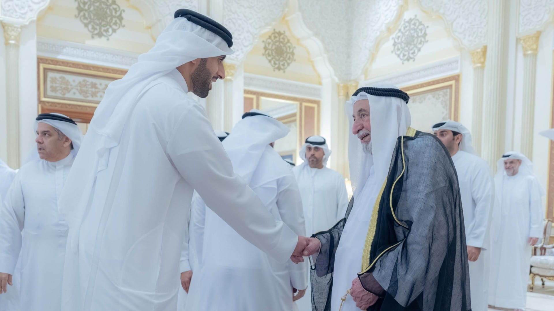 كما حضر الاستقبال، الشيخ سعيد بن صقر القاسمي نائب رئيس مكتب سمو الحاكم بمدينة خورفكان، والشيخ هيثم بن صقر القاسمي نائب رئيس مكتب سمو الحاكم بمدينة كلباء، والشيخ سعود بن سلطان بن محمد القاسمي مدير عام دائرة الشارقة الرقمية، والشيخ فيصل بن سعود القاسمي مدير هيئة مطار الشارقة الدولي، والشيخ عبدالله بن محمد القاسمي مدير الهيئة العامة للشؤون الإسلامية والأوقاف بالشارقة، والشيخ سيف بن محمد القاسمي مساعد الأمين العام للبرلمان العربي للطفل، وسعادة راشد أحمد بن الشيخ رئيس الديوان الأميري، وعدد من الشيوخ وكبار المسؤولين.