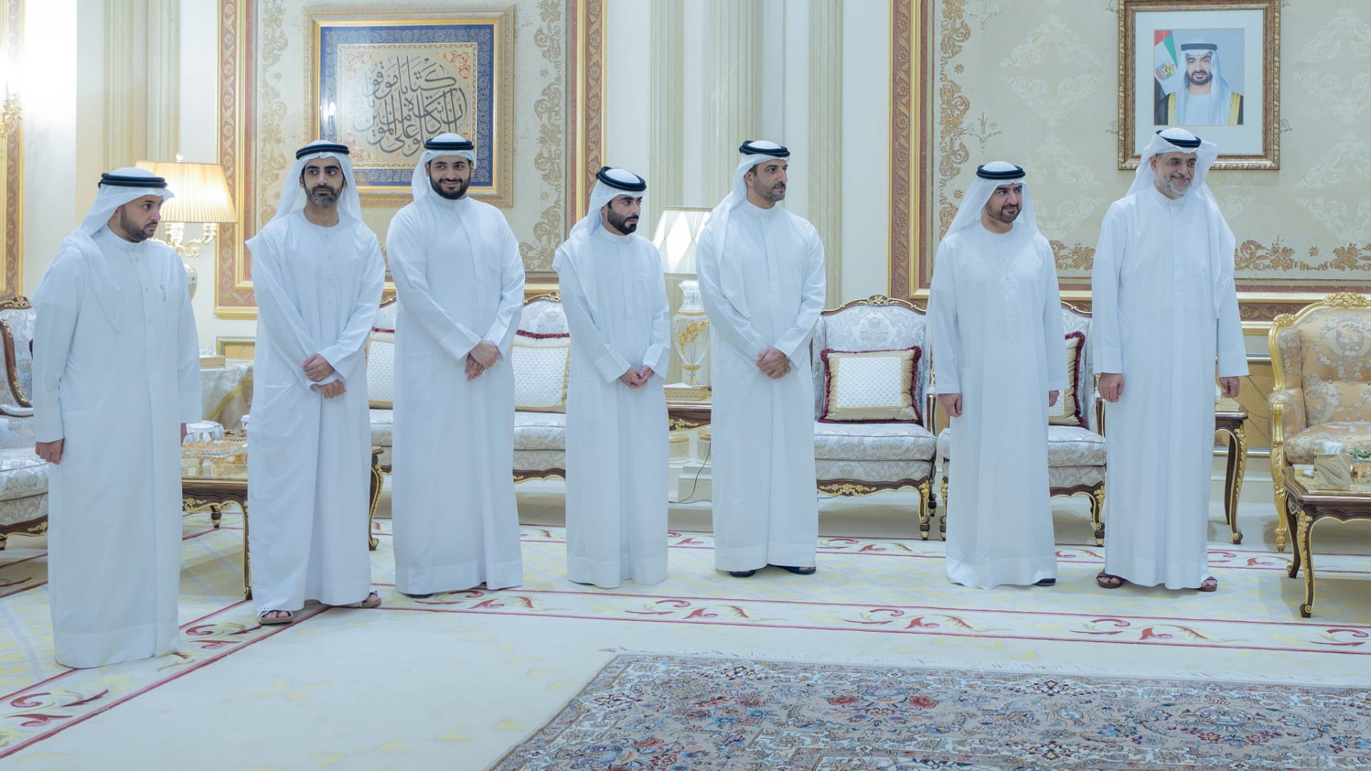 حضر الاستقبال كل من: الشيخ خالد بن عبدالله القاسمي رئيس هيئة الشارقة للموانئ والجمارك والمناطق الحرة، والشيخ الدكتور سالم بن عبدالرحمن القاسمي رئيس مكتب سمو الحاكم، والشيخ فاهم بن سلطان القاسمي رئيس دائرة العلاقات الحكومية، والشيخ محمد بن حميد القاسمي رئيس دائرة الإحصاء والتنمية المجتمعية، والشيخ ماجد بن سلطان القاسمي رئيس دائرة شؤون الضواحي، والشيخ صقر بن محمد القاسمي رئيس مجلس إدارة جمعية الشارقة الخيرية، والشيخ الدكتور خالد بن حميد القاسمي رئيس مجلس الشارقة الرياضي، والشيخ محمد بن عبدالله بن ماجد القاسمي مدير دائرة شؤون البلديات، والشيخ عبدالله بن محمد القاسمي مدير الهيئة العامة للشؤون الإسلامية والأوقاف بالشارقة، وسعادة راشد أحمد بن الشيخ رئيس الديوان الأميري، وعدد من الشيوخ وكبار المسؤولين.