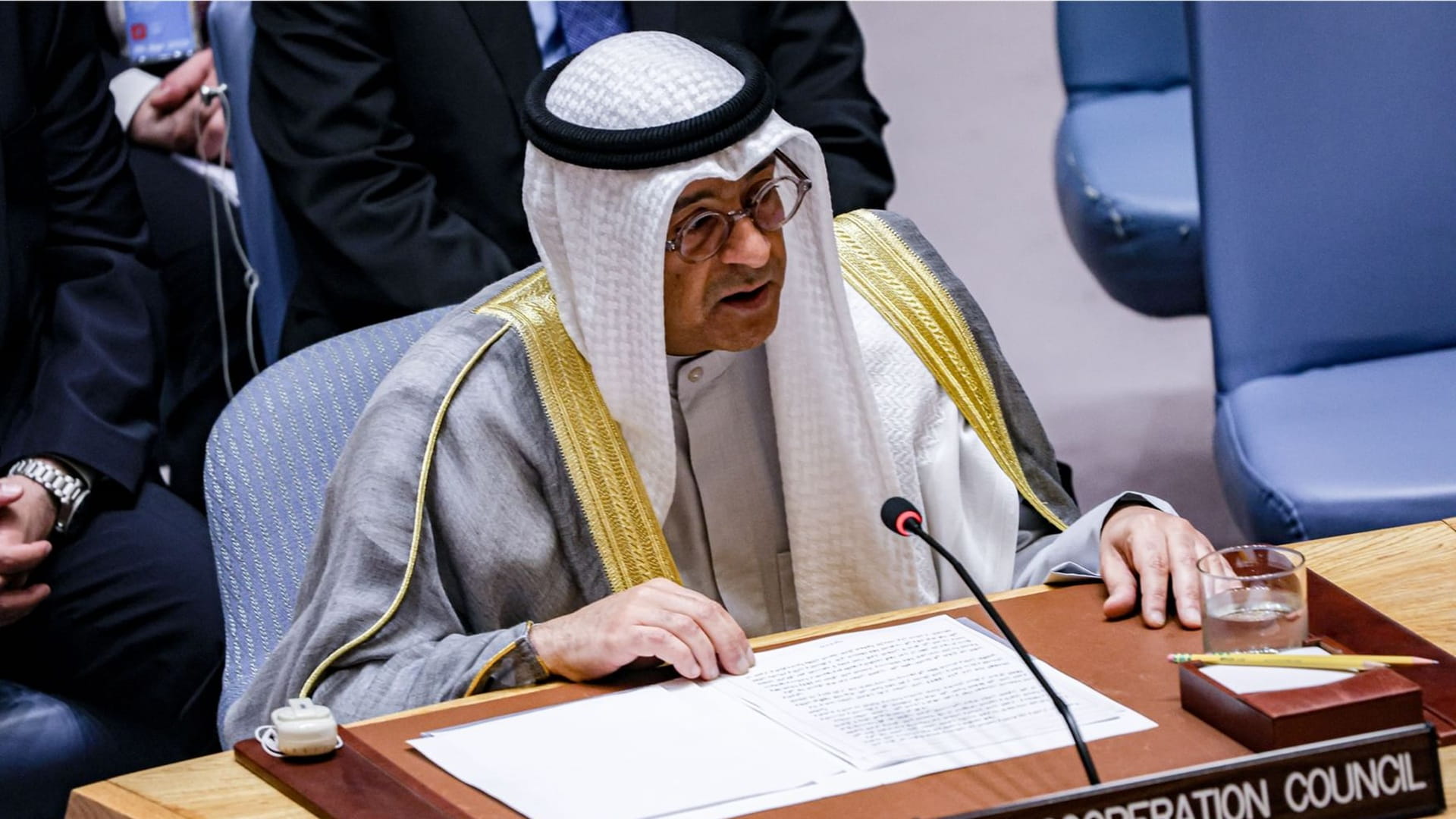 وأضاف الأمين العام لمجلس التعاون لدول الخليج العربية، خلال تقديم الإحاطة رفيعة المستوى حول التعاون بين الأمم المتحدة ومجلس التعاون تحت البند "التعاون بين الأمم المتحدة والمنظمات الإقليمية ودون الإقليمية في حفظ السلم والأمن الدوليين"، في مقر الأمم المتحدة بنيويورك، يوم الخميس، أننا لسنا أمام أزمة عابرة، بل أمام اختبار حقيقي لمصداقية النظام الدولي، فإما أن يُصان الأمن الجماعي بالفعل، أو يُترك لمعادلات القوة وحدها، ونحن في مجلس التعاون، دعاة استقرار، وشركاء في المسؤولية، نمد يدنا للسلام، لكننا لا نقبل التفريط في أمننا والمساس بسيادة أراضينا، ولا نقبل أن يكون استقرار منطقتنا رهينة للفوضى، ولا أن يصبح اقتصاد العالم أسيرًا لتهديد الممرات، ليبقى "الخليج العربي" - رغم كل التحديات- منطقة استقرار، لا ساحة صراع، شريكًا فاعلًا في الأمن، لا عبئًا عليه.