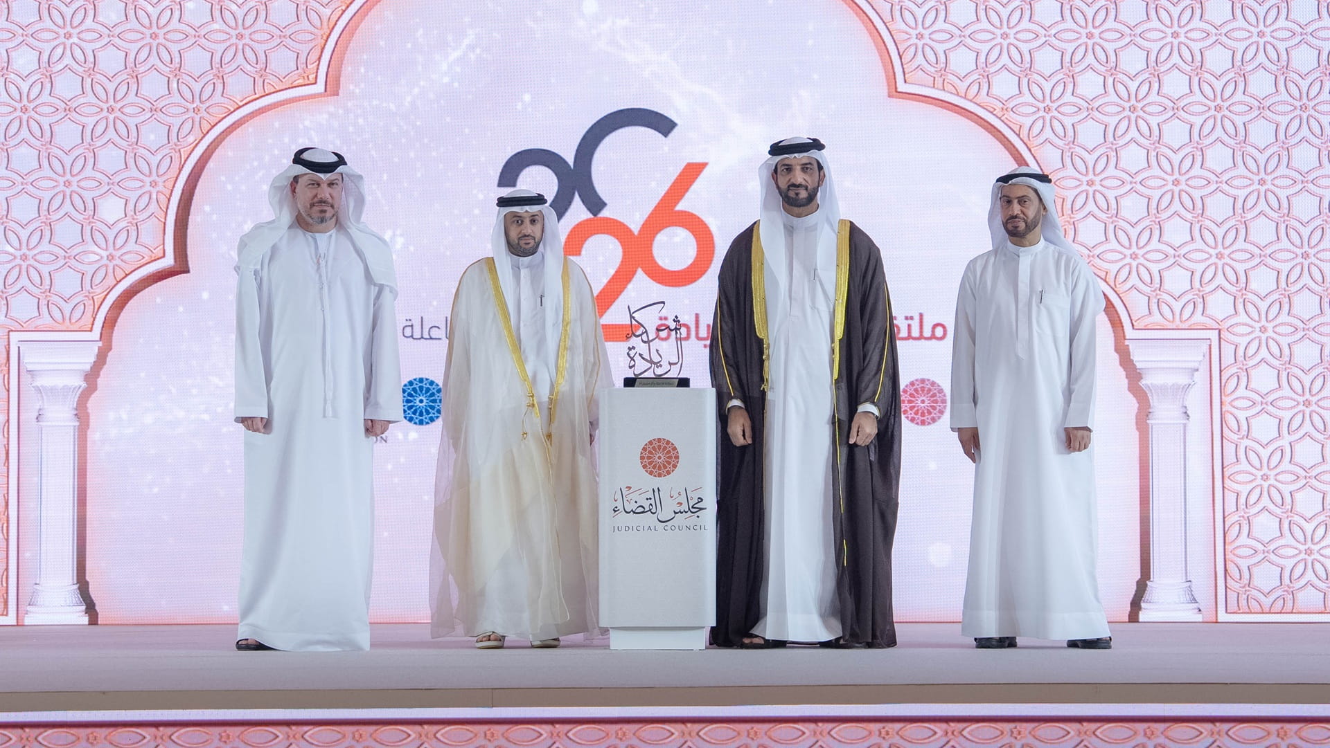 واستهل الحفل بالسلام الوطني لدولة الإمارات العربية المتحدة، عقبه تلاوة آيات بينات من الذكر الحكيم، ألقى بعدها القاضي الدكتور محمد عبيد الكعبي رئيس دائرة القضاء كلمة أكد فيها أن مسيرة التطوير القضائي في إمارة الشارقة تجسد رؤية صاحب السمو الشيخ الدكتور سلطان بن محمد القاسمي عضو المجلس الأعلى حاكم الشارقة، الذي أرسى دعائم سيادة القانون كضمانة أساسية لحماية الحقوق. ويمثل هذا النهج الدافع الرئيسي للمنظومة القضائية لمواصلة التحديث، والتي مكنت الدائرة من تحقيق قفزات نوعية في كفاءة الأداء وجودة المخرجات القضائية بما يواكب تطلعات الإمارة.