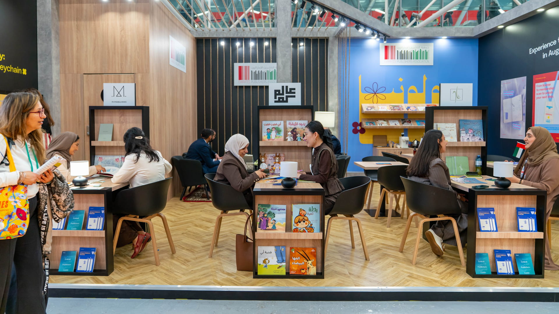 وتسلّط الجمعية الضوء خلال مشاركتها على مجموعة من دور النشر الإماراتية المتخصصة، من بينها "عالمكم للنشر والتوزيع" التي تقدّم تجارب تعليمية مبتكرة للأطفال تجمع بين السرد القصصي واللعب، و"ميمو كويركس" التي تبرز في مجال القصص البصرية والتصميم الفني، إضافة إلى "دار غاف للنشر" التي تسعى إلى تعزيز حضور الكتاب وترسيخ ثقافة القراءة من خلال إصدارات نوعية مستلهمة من الهوية المحلية.