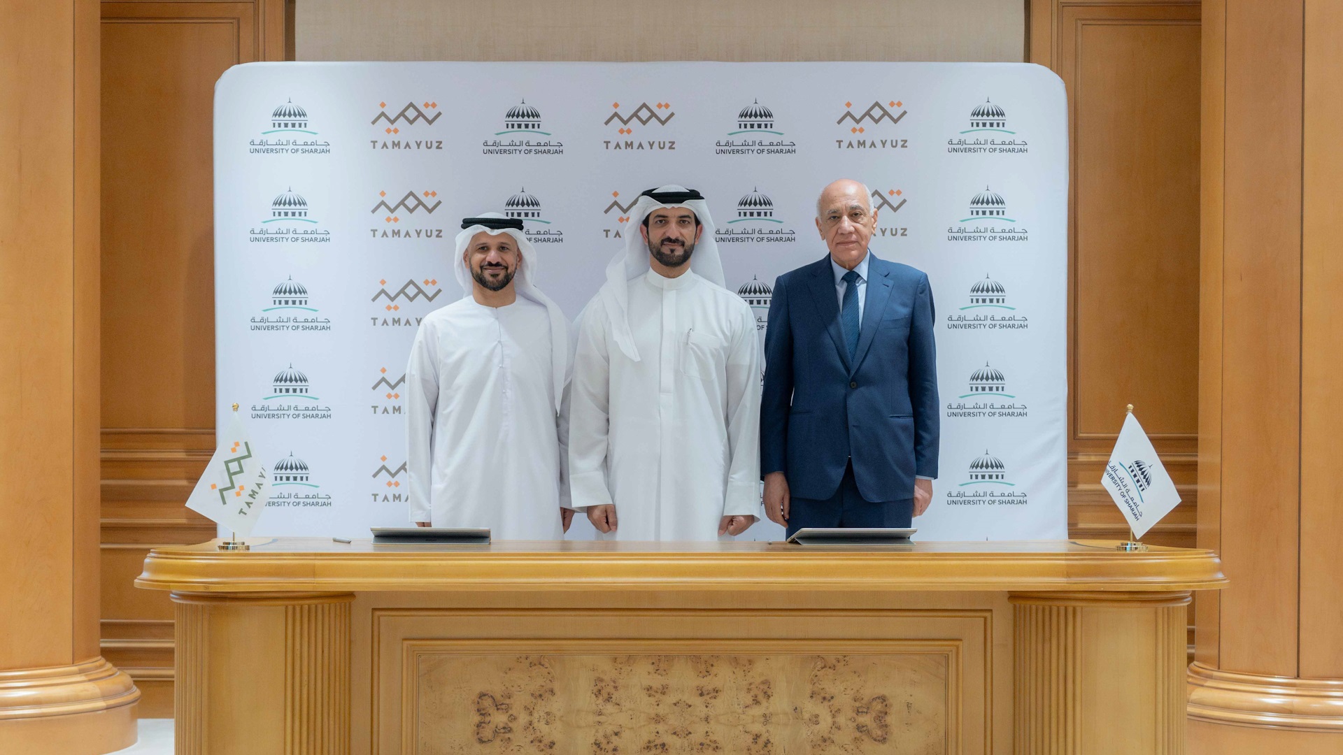 شهد سمو الشيخ سلطان بن أحمد بن سلطان القاسمي، نائب حاكم الشارقة، رئيس جامعة الشارقة، رئيس جائزة التميز المؤسسي "تميّز"، صباح اليوم الخميس، توقيع مذكرة تفاهم برنامج التمكين المعرفي في مجال التميز المؤسسي بين جامعة الشارقة وجائزة التميز المؤسسي "تميّز"، وذلك في مكتب سموه في الجامعة.