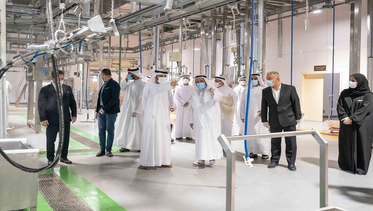 During the tour, His Highness the Ruler of Sharjah was briefed about the livestock market facilities and the services provided to the public, including all its different shops, administrative building, and facilities that promote the development of the livestock industries in the emirate.