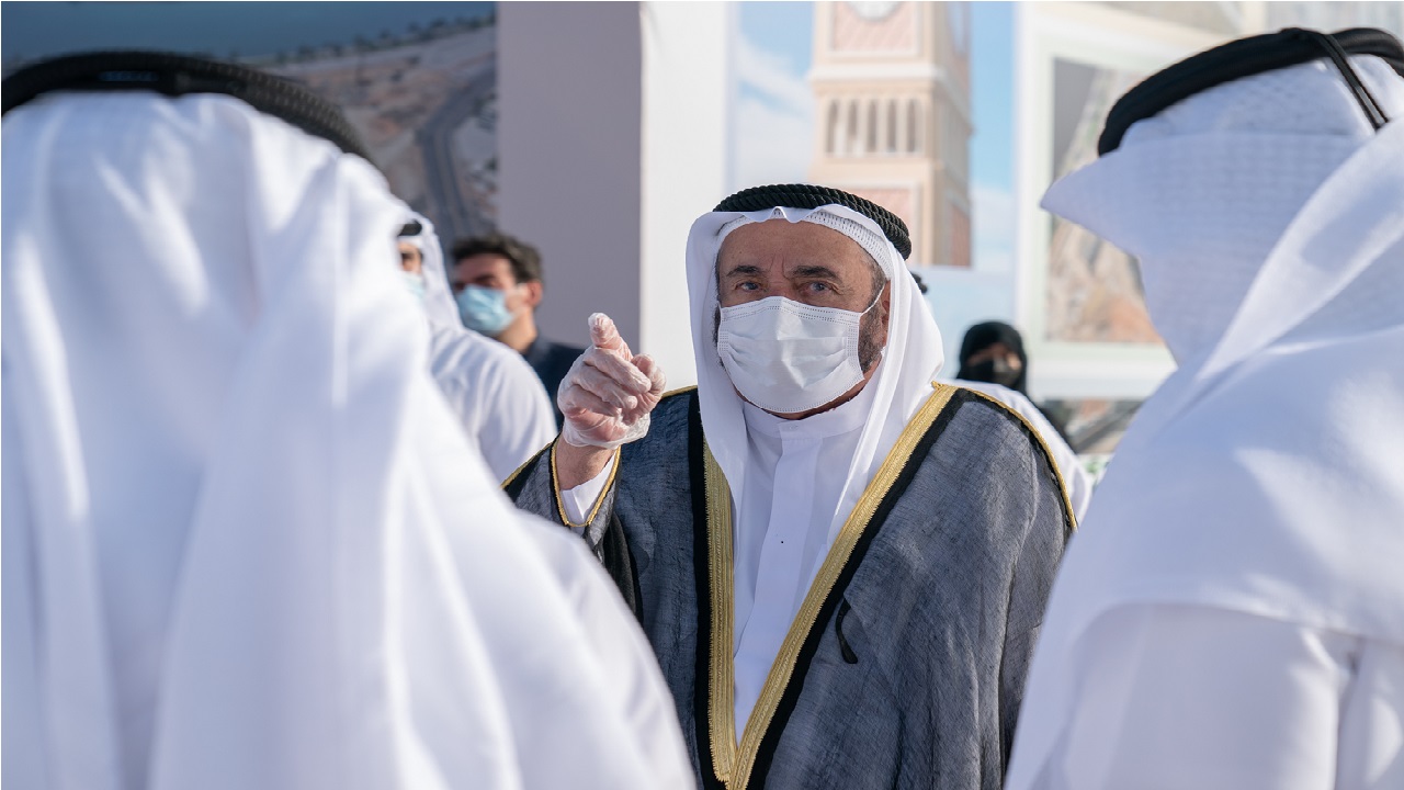 Upon arrival at the venue, His Highness the Ruler of Sharjah was briefed on the construction drilling operations that have been completed at the site, and learnt from Engineer Salah Bin Butti Al Muhairi, Adviser of Sharjah Department of Town Planning and Survey, about the engineering plans and maps for the square and the clock tower, stressing the need for expediting work to provide all services for visitors to the area.