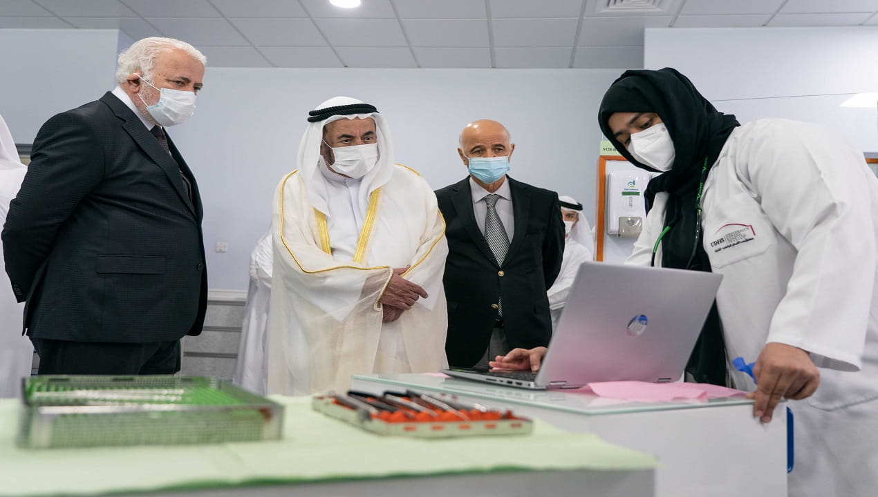 His Highness was accompanied during his tour by a number of members of the Board of Trustees of the University of Sharjah, Dr. Hamid Majoul Al Nuaimi, President of the University of Sharjah, and a number of Vice-Chancellors of the University.