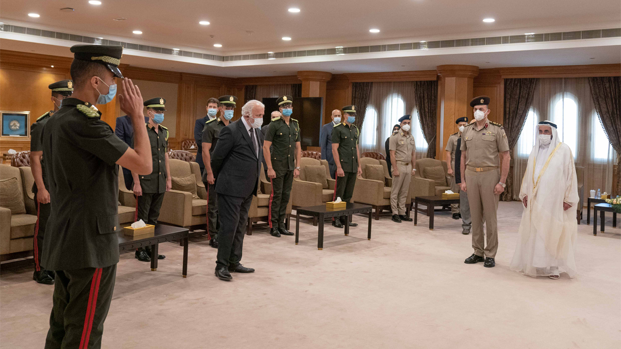 His Highness discussed with the delegation ways to enhance the scientific cooperation in the fields of health sciences, reviewing the outcomes of the memorandum of understanding previously held between the College of Medicine at the University of Sharjah and the Armed Forces College of Medicine (AFCM), highlighting the significance of exchanging the experiences and knowledge through supporting academic programs, scientific research, and classroom and extracurricular activities.
