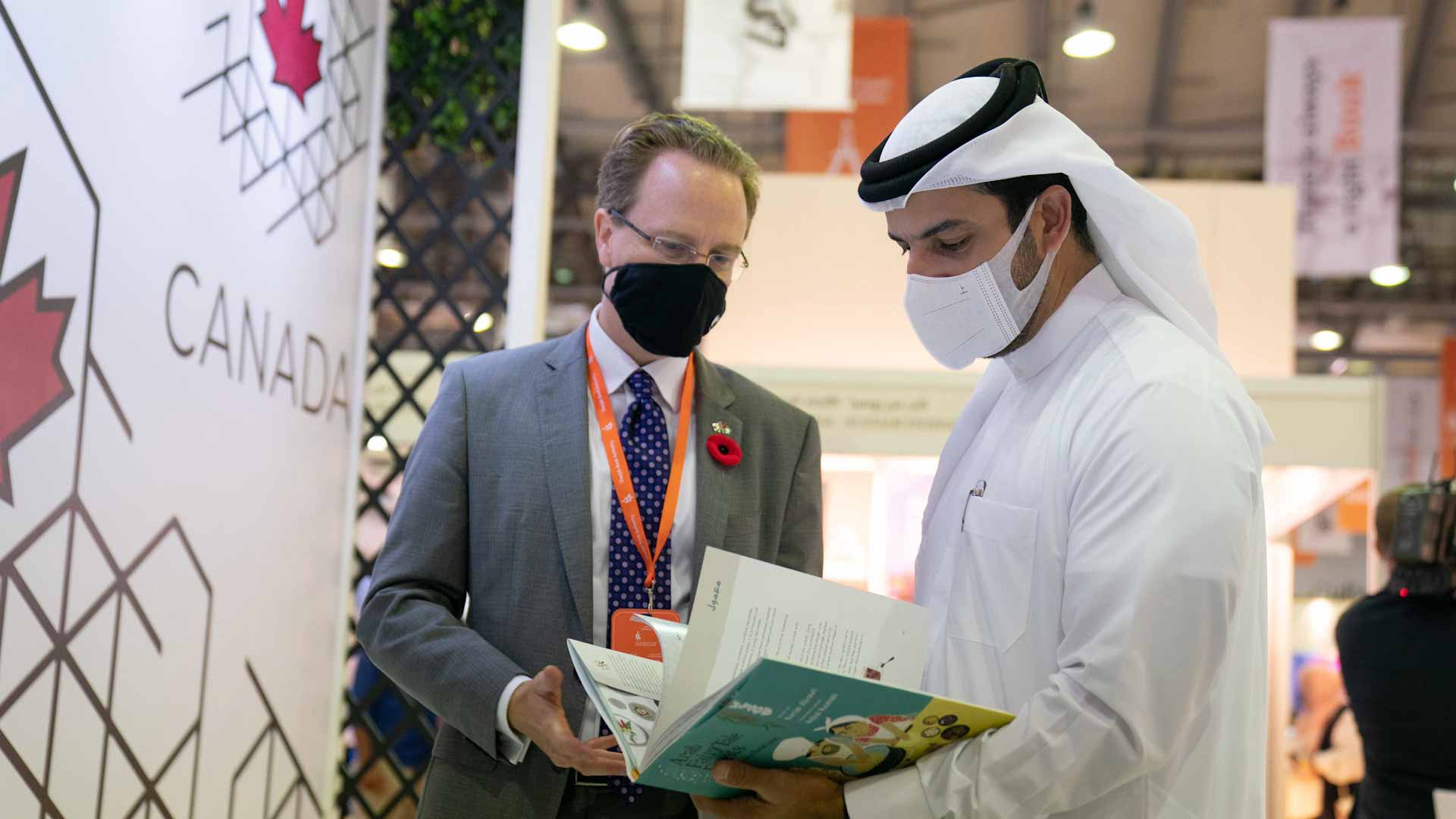 His Highness stopped at the Canadian pavilion, where he listened to a detailed explanation of the State of Canada's participation in the exhibition, the various books it offers for children and adults, and the importance of the Sharjah International Book Fair for Canadian Publishers in increasing the spread of Canadian books and publications in Sharjah and the region in general.
