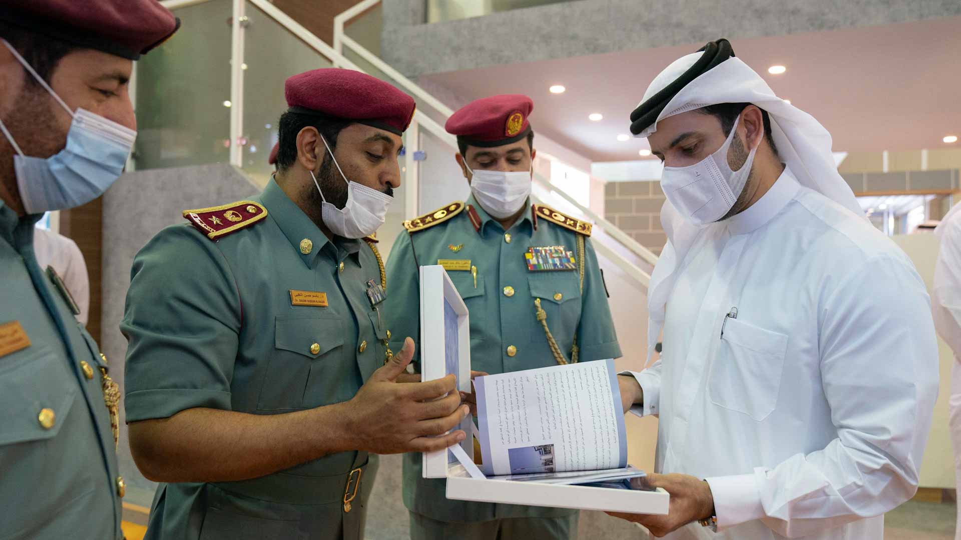 His Highness’s tour of the exhibition also included a number of other pavilions, including: Sharjah Police General Command, Sharjah Documentation and Archives Authority, Arabic Language Academy, the Department of Culture, the Ministry of Education, the Supreme Council for Family Affairs, the Judicial Department, and the National Archives in the Ministry of Presidential Affairs and Al Qasimia University Pavilion.