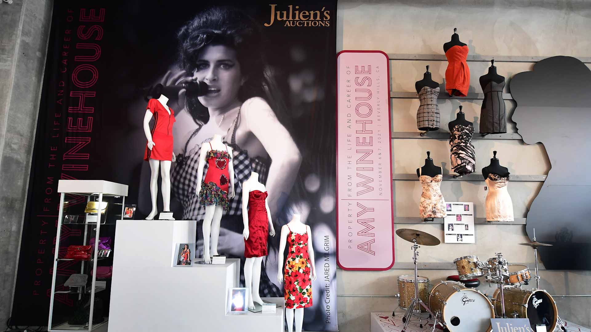 The dress was the highlight of an 800-item collection of personal effects, ranging from bras and DVDs to books and make-up that were sold by Winehouse's parents, Mitch and Janis.