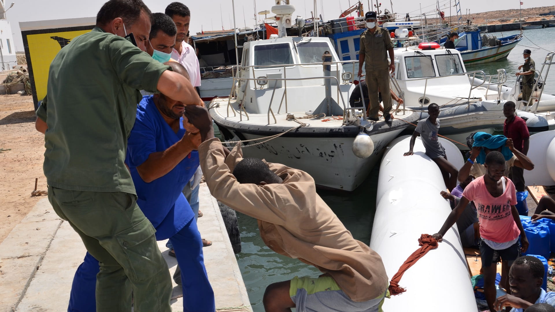 The migrants were taken to the port of El Kitf in Ben Guerdane.