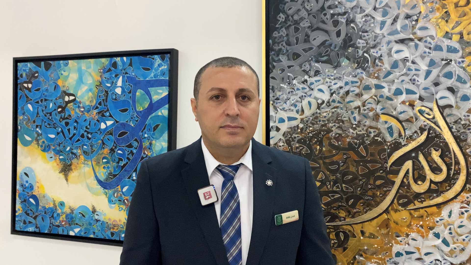 Sharjah24: His Excellency Abdullah Al Owais, Head of the Department of Culture in Sharjah, inaugurated, on Sunday, the exhibition "Tajalyat", in the homes of calligraphers in Calligraphy Square, by the Syrian artist, Jalal Ibrahim Al Mohareb, as part of the activities of the 24th edition of the Sharjah Islamic Arts Festival.