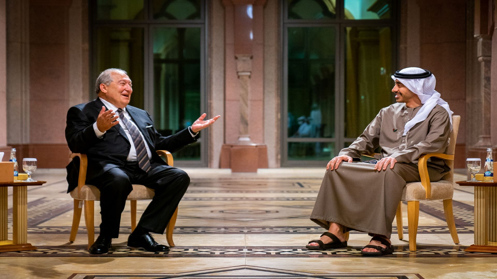 Sheikh Abdullah conveyed to the Armenian President the greetings of President His Highness Sheikh Khalifa bin Zayed Al Nahyan; His Highness Sheikh Mohammed bin Rashid Al Maktoum, Vice President, Prime Minister and Ruler of Dubai; and His Highness Sheikh Mohamed bin Zayed Al Nahyan, Crown Prince of Abu Dhabi and Deputy Supreme Commander of the UAE Armed Forces, and their wishes for Armenia further progress and prosperity.