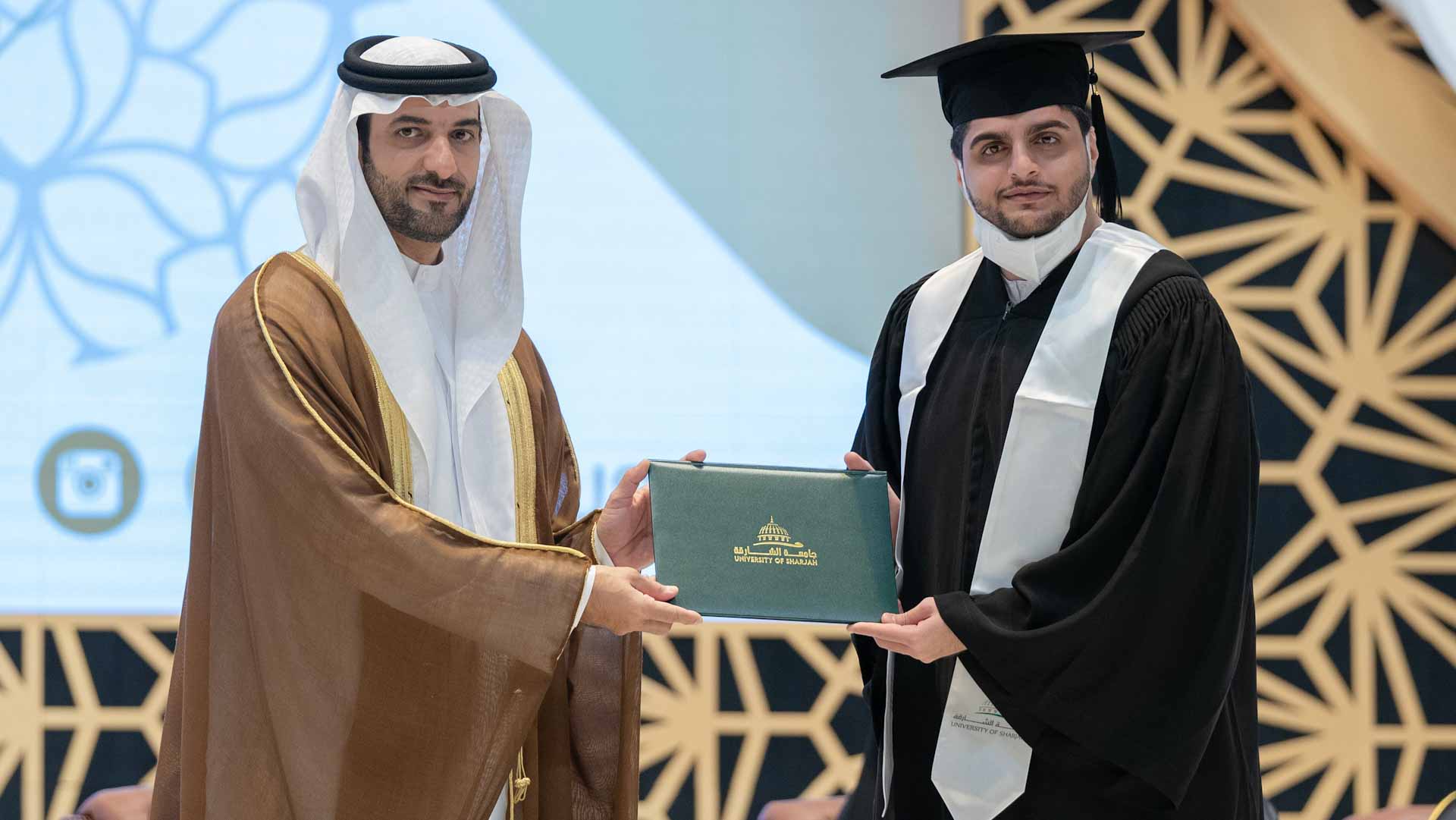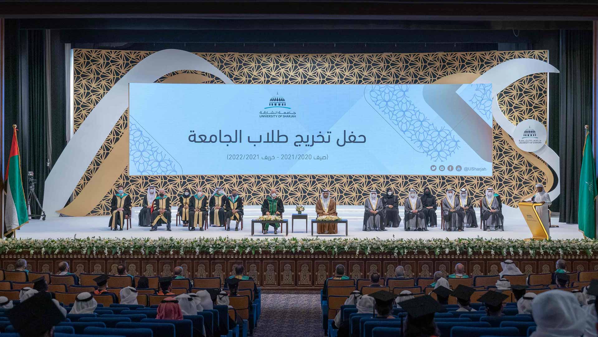 Sheikh Sultan bin Ahmed bin Sultan Al Qasimi handed over the certificates to the graduate students, as the number of graduates reached 419 graduates in various undergraduate programmes in all colleges except for medical colleges.