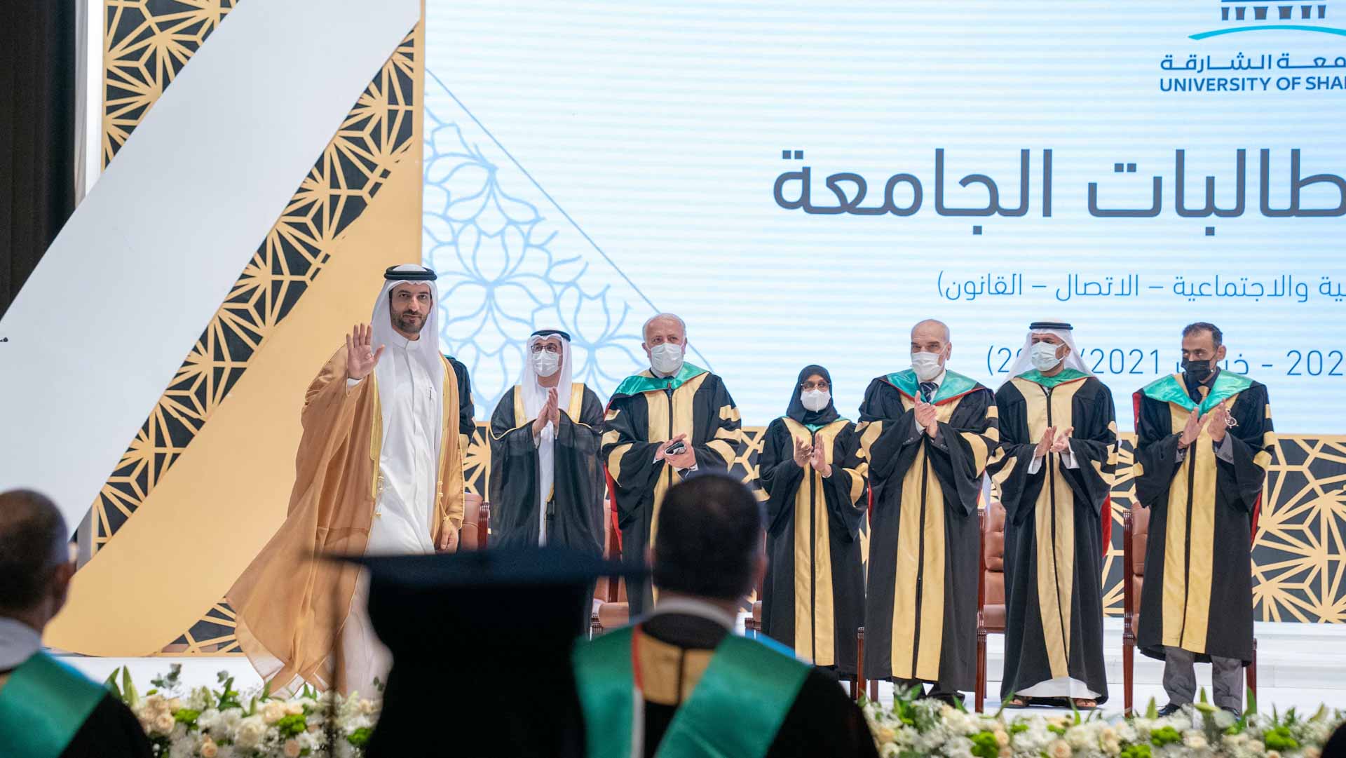 After that, Sheikh Sultan bin Ahmed Al Qasimi, President of the University of Sharjah, handed over certificates to the graduates, who had reached 403 graduates from the Faculties of Arts, Humanities and Social Sciences, Communication and Law.