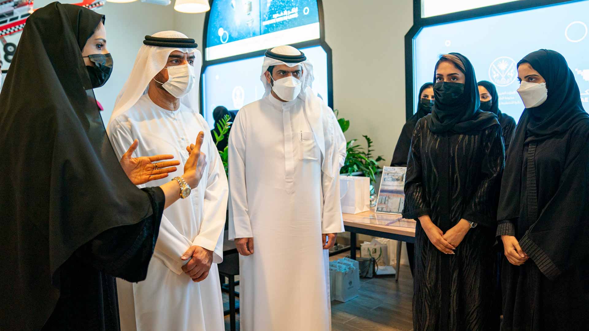 During the visit, Sheikh Abdullah bin Salem listened to detailed explanations of the various participating projects and initiatives, which aim to support the innovation system in the UAE to achieve sustainable development goals, and for the country to be an advanced platform that receives creators and innovators in all fields.