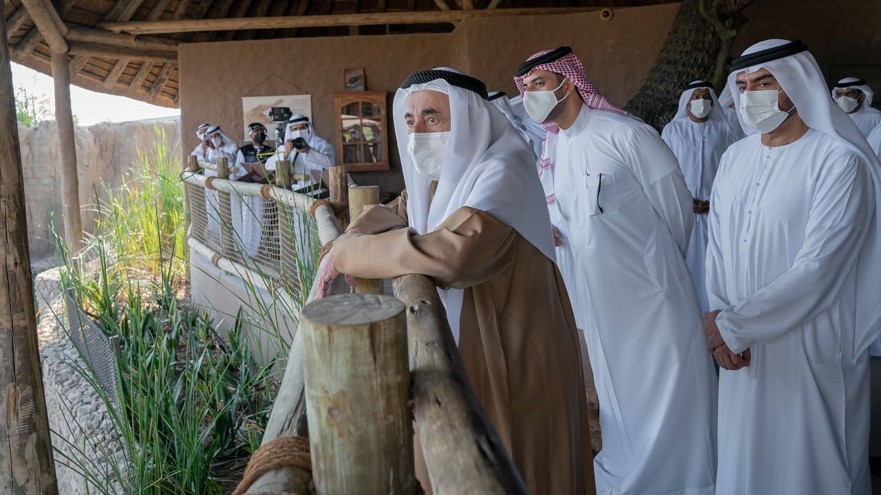 Upon his arrival at the Sharjah Safari, His Highness drew the traditional curtain marking the official inauguration of the Sharjah Safari, which includes 12 different environments, and extends over an area of 8 square kilometres, in Al Bridi Nature Reserve in the city of Al Dhaid, being a natural and tourist landmark at the level of the United Arab Emirates and the region. His Highness the Ruler of Sharjah, in the presence of Sheikhs and the attendees toured all over the much-awaited Sharjah Safari Park, reviewing its 12 themed environments, each representing a region in Africa, and the life and terrain of the animals and birds that live in them.