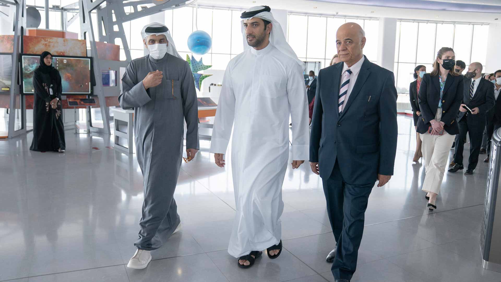 The delegation toured the departments and facilities of the Sharjah Academy For Astronomy, Space Sciences and Technology, where they got acquainted with its various sections, models, exhibition, and its planetarium.