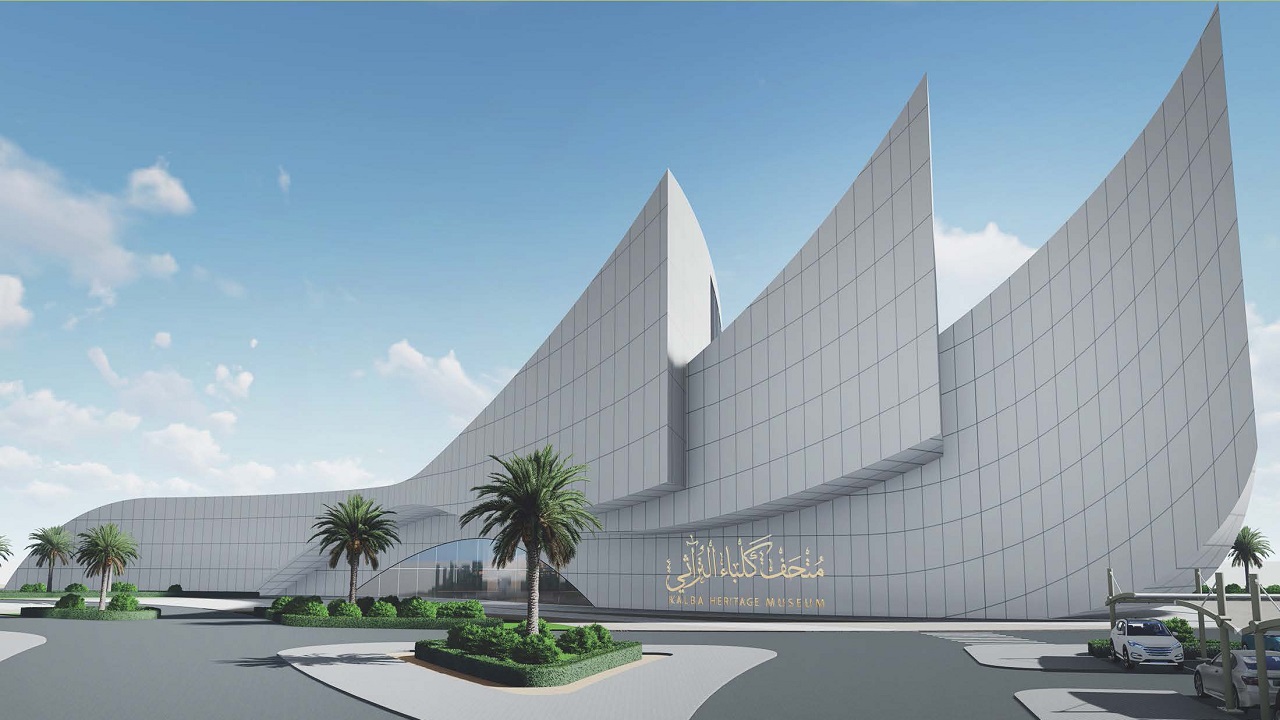 The Kalba Heritage Museum, to be located on the beach of Kalba, opposite the heritage area of Khor Kalba, will feature three sails of varying heights representing the sailing ship, and will provide many educational and recreational services and external services such as parking lots and gardens.