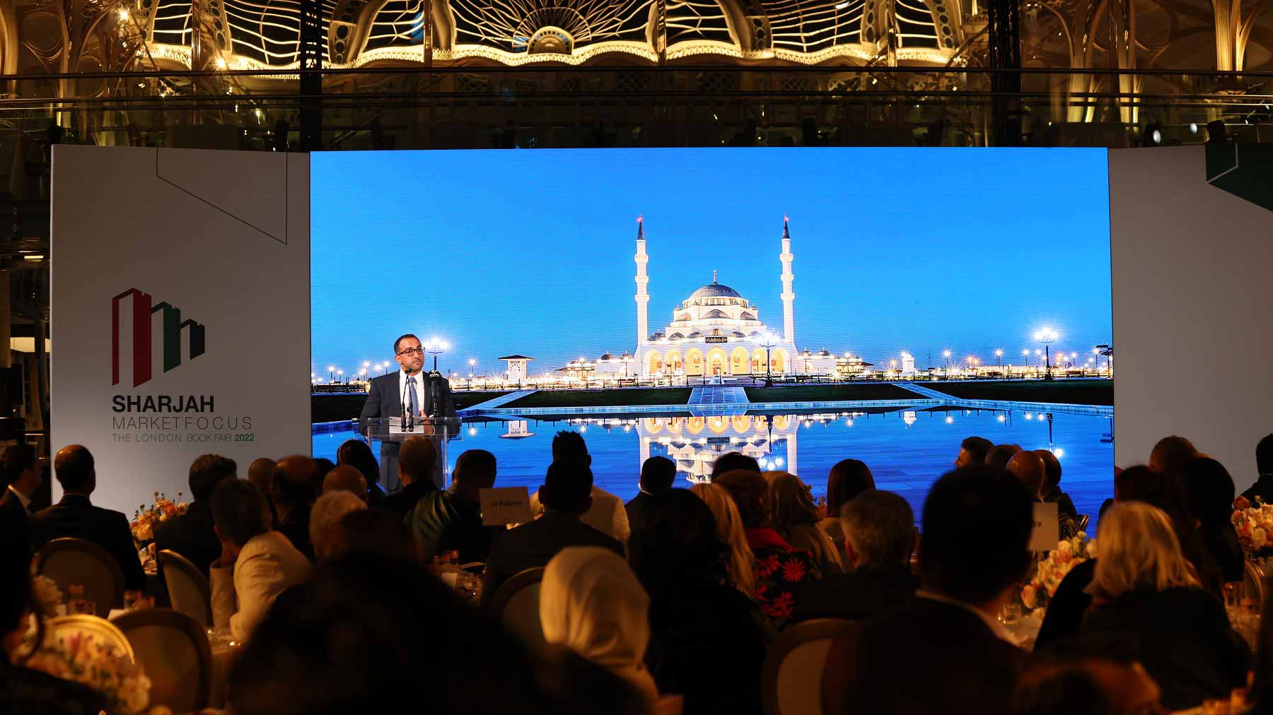 The dinner, organised by the Sharjah Book Authority (SBA), was hosted in London’s iconic Royal Opera House. Prominent guests included Sheikh Fahim bint Sultan Al Qasimi, Chairman of the Department of Government Relations (DGR) in Sharjah, who is heading the Sharjah delegation at the book fair; Sheikha Bodour Al Qasimi, President of International Publishers Association (IPA); His Excellency Mohammad Al Murr, Chairman of the Mohammed Bin Rashid Al Maktoum Library Foundation; His Excellency Omar Ghobash, Assistant Minister for Culture and Public Diplomacy in the UAE Foreign Ministry; His Excellency Ahmed bin Rakkad Al Ameri, Chairman of Sharjah Book Authority (SBA).