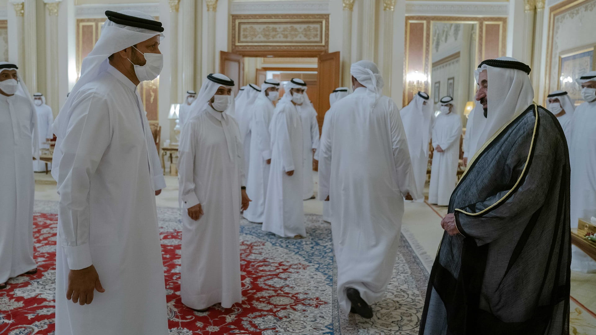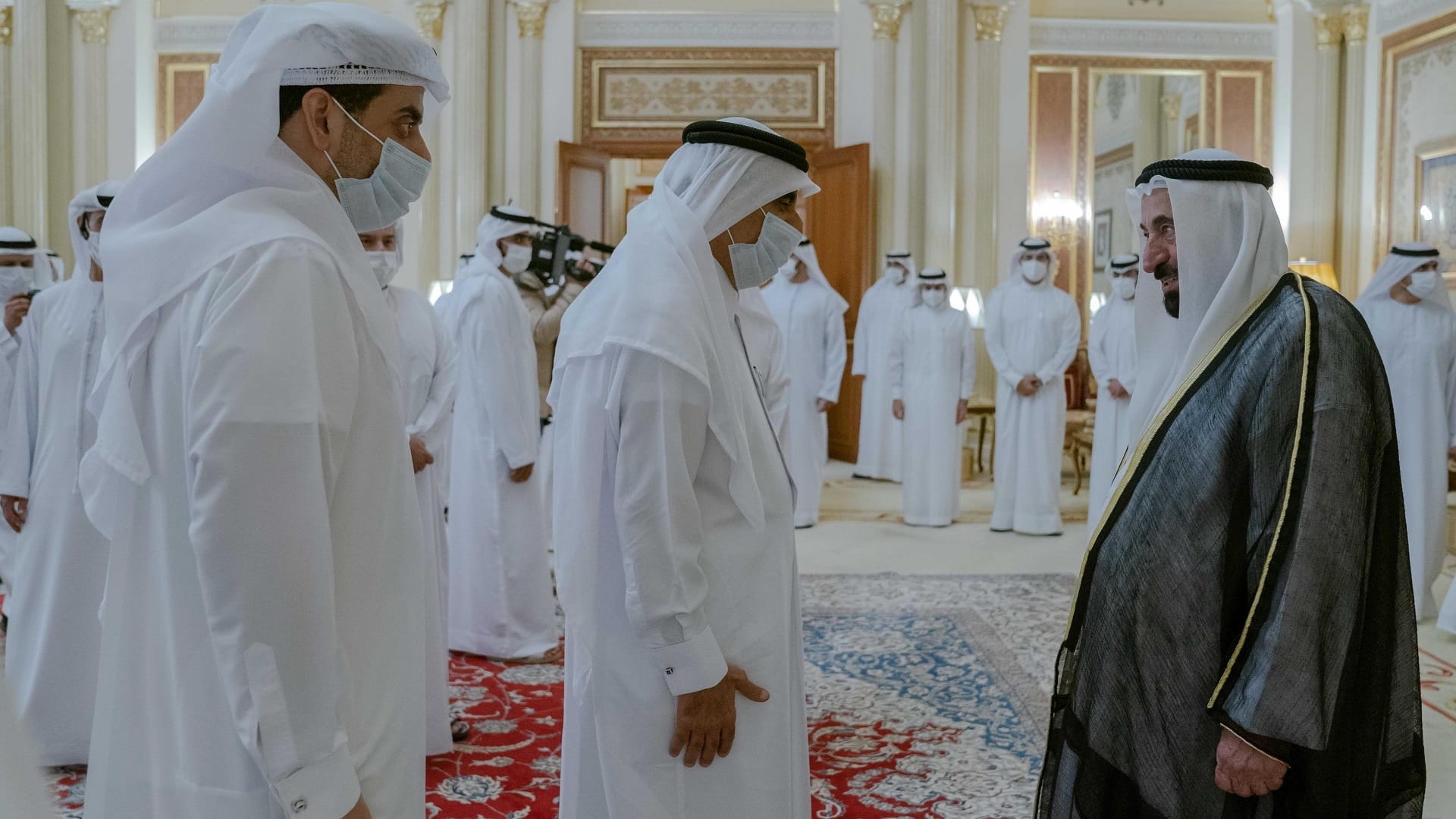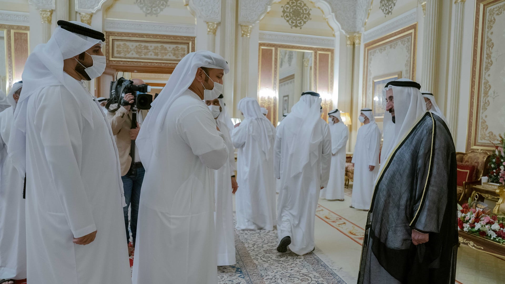 His Highness exchanged congratulations and blessings with the delegations of well-wishers, and with Counsellor Dr. Hamad Saif Al Shamsi, UAE Attorney General, and members of the judicial and parliamentary authority in the country.