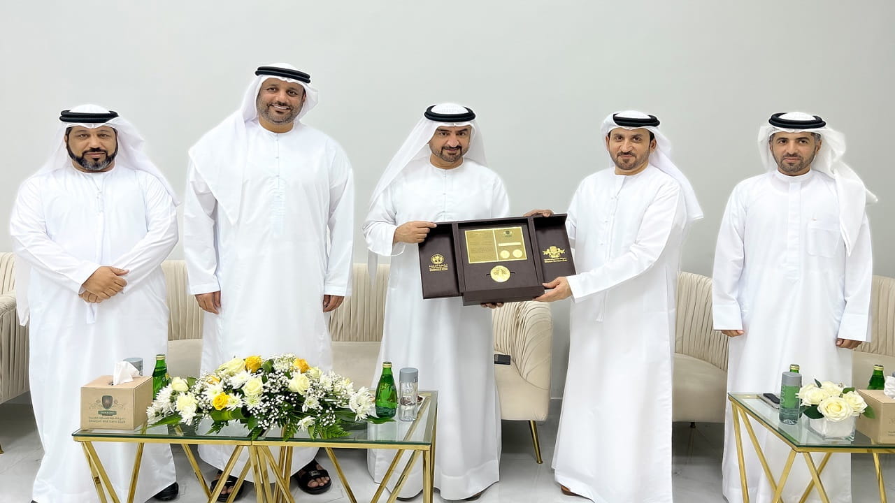 The Deputy Ruler of Sharjah received a commemorative gift from the Sharjah Old Cars Club, represented by a commemorative coin that included on its front side the logo of the Sharjah Sports Council and the logo of the Sharjah Old Cars Club, while the back side of the coin included the Martyrs Monument that was built on the campus of the University City in Sharjah in perpetuity of their memory.