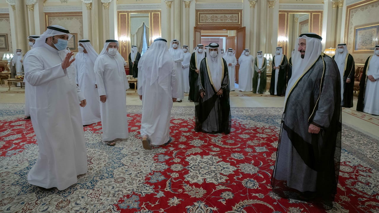 Also present at the reception were Sheikh Mohammed bin Saud Al Qasimi, Chairman of Sharjah Finance Department; Sheikh Khalid bin Abdullah Al Qasimi, Chairman of Sharjah Seaports, Customs and Free Zones; Sheikh Salem bin Abdulrahman Al Qasimi, Chairman of the Ruler’s Office; Sheikh Mohammed bin Humaid Al Qasimi, Chairman of the Department of Statistics and Community Development; Sheikh Sultan bin Abdullah bin Salem Al Qasimi, Director of the Department of Statistics and Community Development; Rashid Ahmed bin Al Shaikh, Chairman of the Ruler’s Court; and heads of local departments and institutions, as well as directors of Sharjah departments, and masses of citizens.