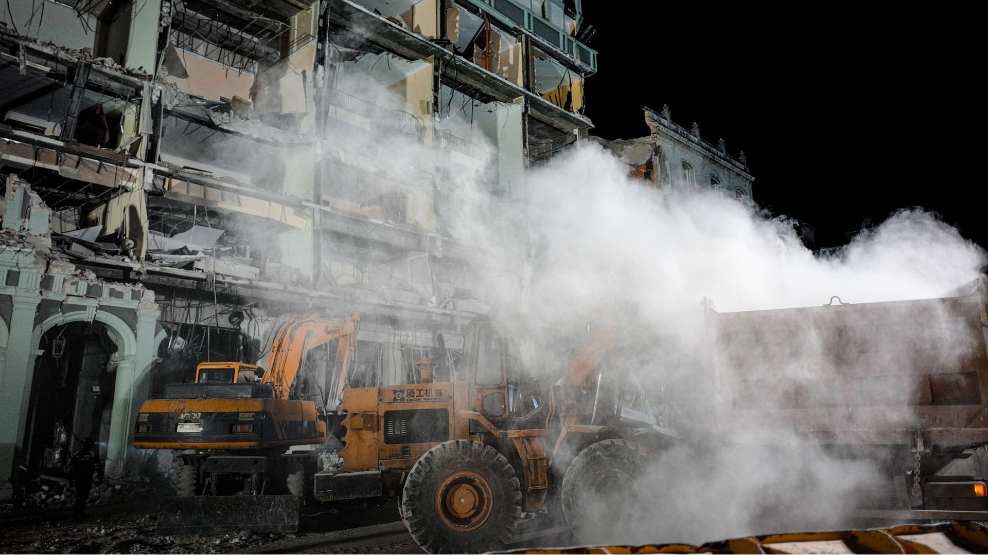 Firefighters and rescue workers remove debris from the ruins of the Saratoga Hotel, in Havana,