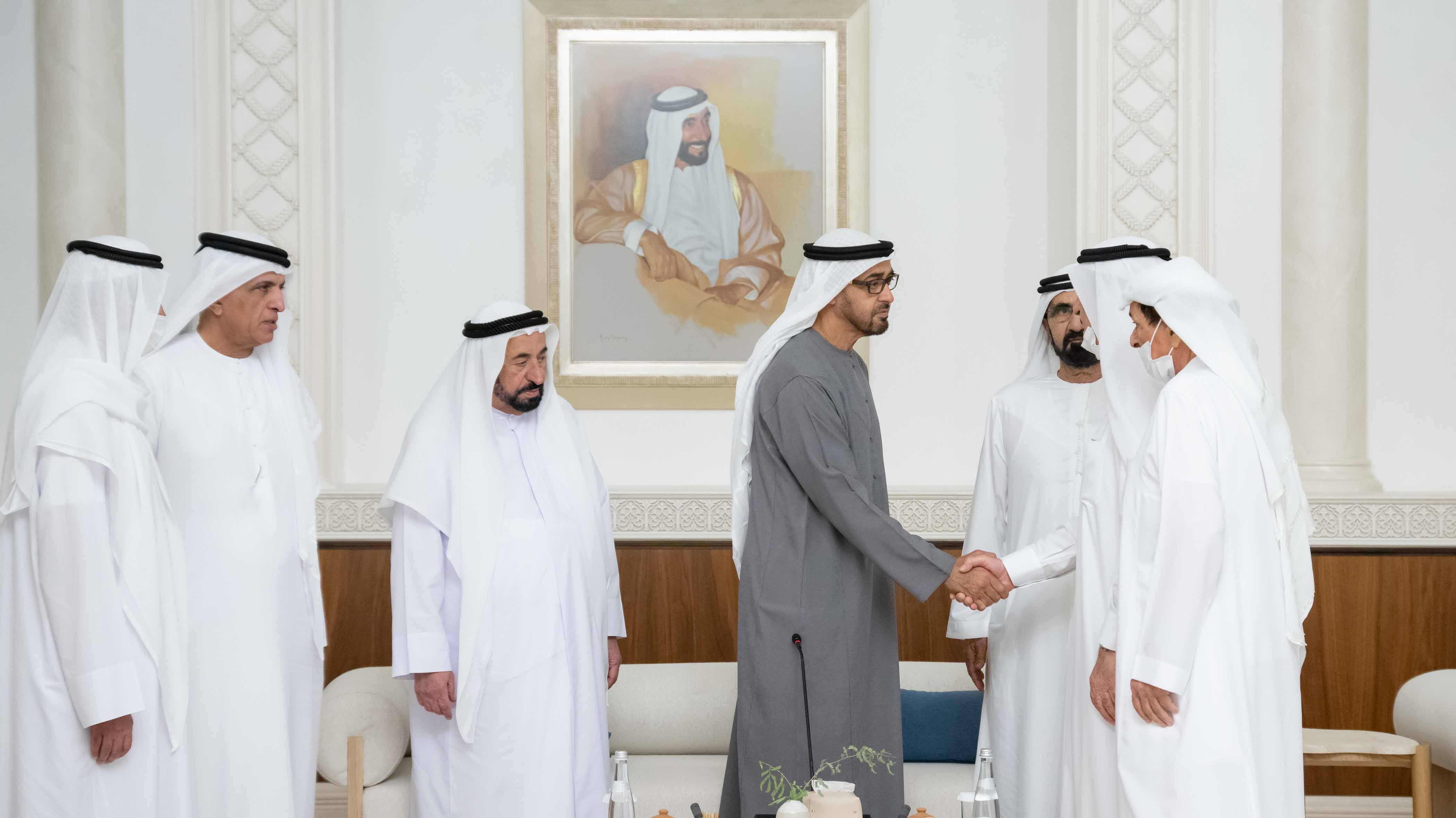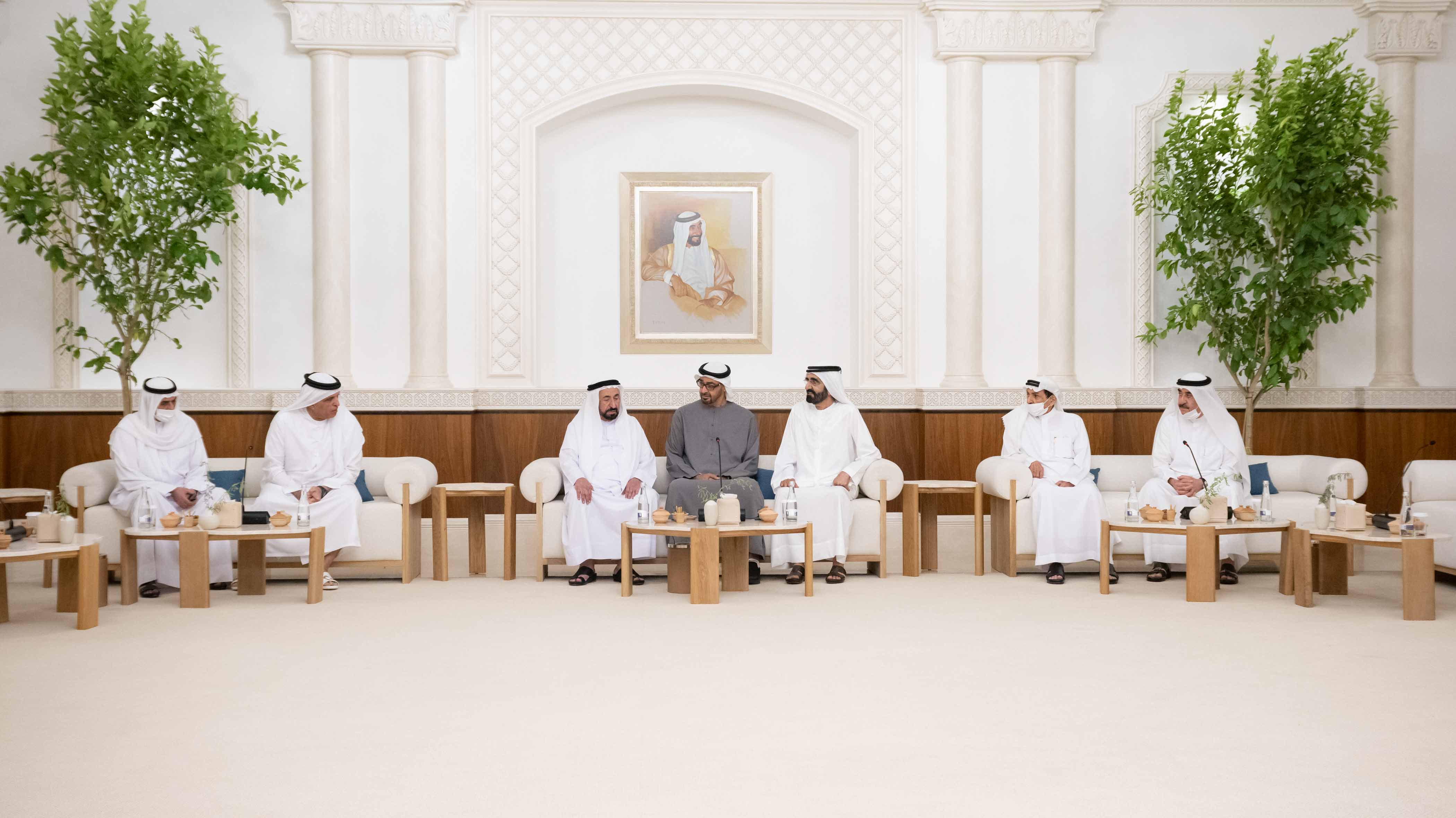 The meeting was attended by His Highness Sheikh Mohamed bin Zayed Al Nahyan; His Highness Sheikh Dr. Sultan bin Muhammad Al Qasimi, Supreme Council Member and Ruler of Sharjah; His Highness Sheikh Humaid bin Rashid Al Nuaimi, Supreme Council Member and Ruler of Ajman; His Highness Sheikh Hamad bin Mohammed Al Sharqi, Supreme Council Member and Ruler of Fujairah; His Highness Sheikh Saud bin Rashid Al Mu'alla, Supreme Council Member and Ruler of Umm Al Qaiwain; and His Highness Sheikh Saud bin Saqr Al Qasimi, Supreme Council Member and Ruler of Ras Al Khaimah.