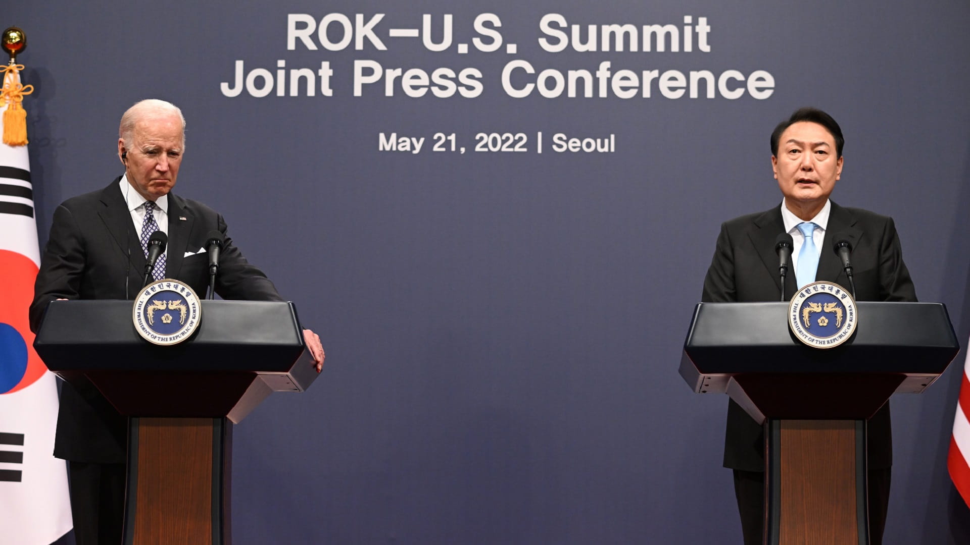 After meeting in Seoul on Biden's first trip to Asia as president, the two leaders said in a statement that "considering the evolving threat posed by" North Korea, they "agree to initiate discussions to expand the scope and scale of combined military exercises and training on and around the Korean peninsula".