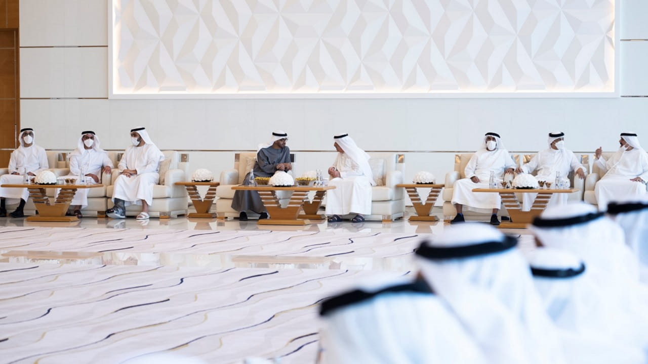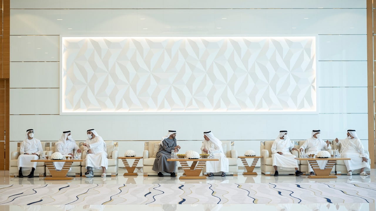 The meeting was attended by Sheikh Rashid bin Saud bin Rashid Al Mu'alla, Crown Prince of Umm Al Quwain; Sheikh Nahyan bin Zayed Al Nahyan, Chairman of the Board of Trustees of the Zayed Charitable and Humanitarian Foundation; Lt. General Sheikh Saif bin Zayed Al Nahyan, Deputy Prime Minister and Minister of the Interior; Sheikh Mansour bin Zayed Al Nahyan, Deputy Prime Minister and Minister of Presidential Affairs; Sheikh Khaled bin Mohamed bin Zayed, Member of Abu Dhabi Executive Council and Chairman of Abu Dhabi Executive Office; Sheikh Hamdan bin Mohamed bin Zayed Al Nahyan; and Sheikh Mohammed bin Hamad bin Tahnoun Al Nahyan, Advisor for Special Affairs at the Ministry of Presidential Affairs, along with a number of sheikhs and officials.