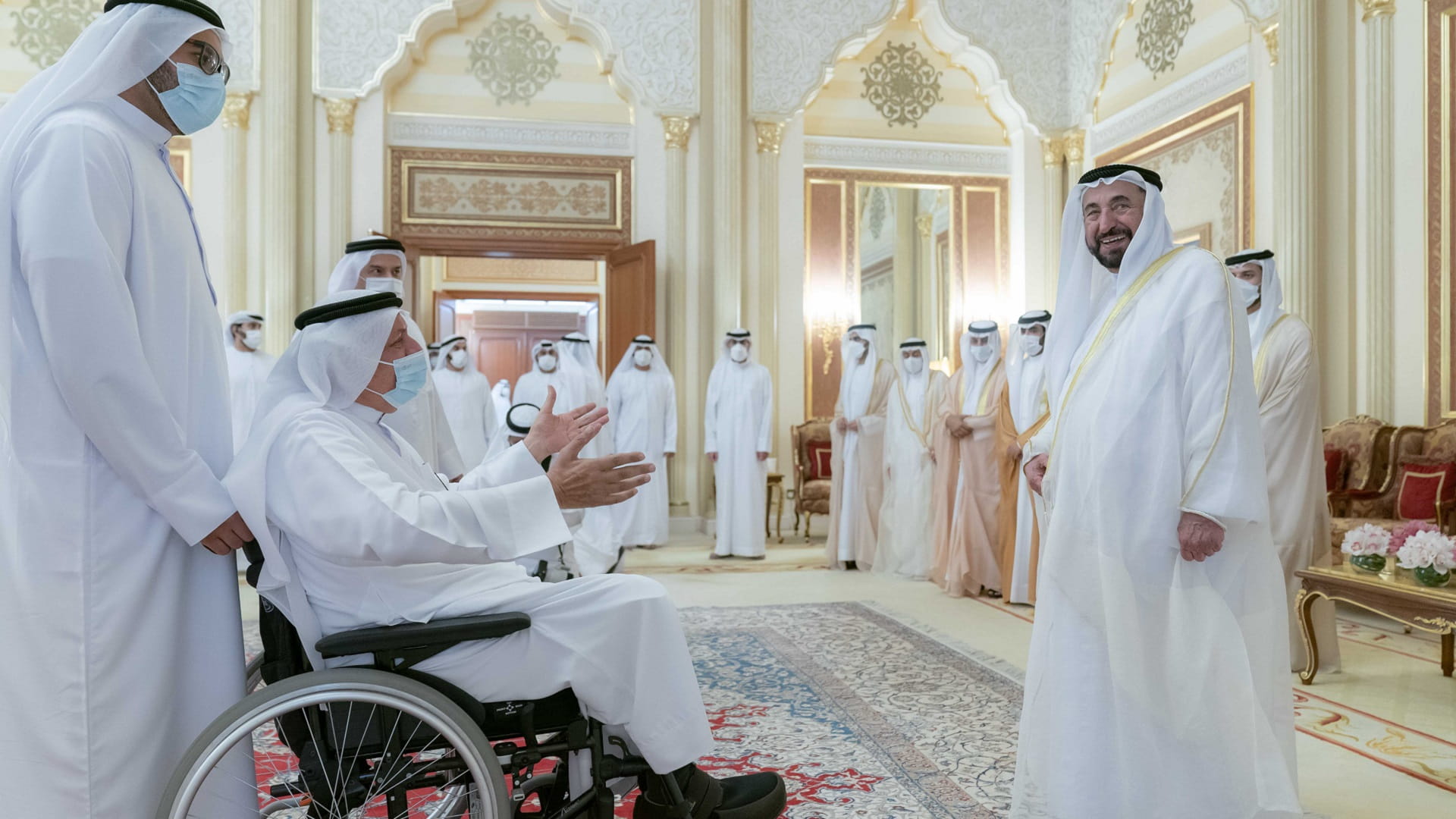 The reception was attended by Sheikh Mohammed bin Saud Al Qasimi, Head of the Central Finance Department; Sheikh Khalid bin Abdullah Al Qasimi, Head of the Department of Seaports and Customs; Sheikh Salem bin Abdulrahman Al Qasimi, Head of the Ruler’s Office; and Sheikh Mohammed bin Humaid Al Qasimi, Chairman of the Department of Statistics and Community Development; and several other Sheikhs, Abdul Rahman Bin Mohammed Al Owais, Minister of Health and Prevention; and heads of local and federal departments and entities.