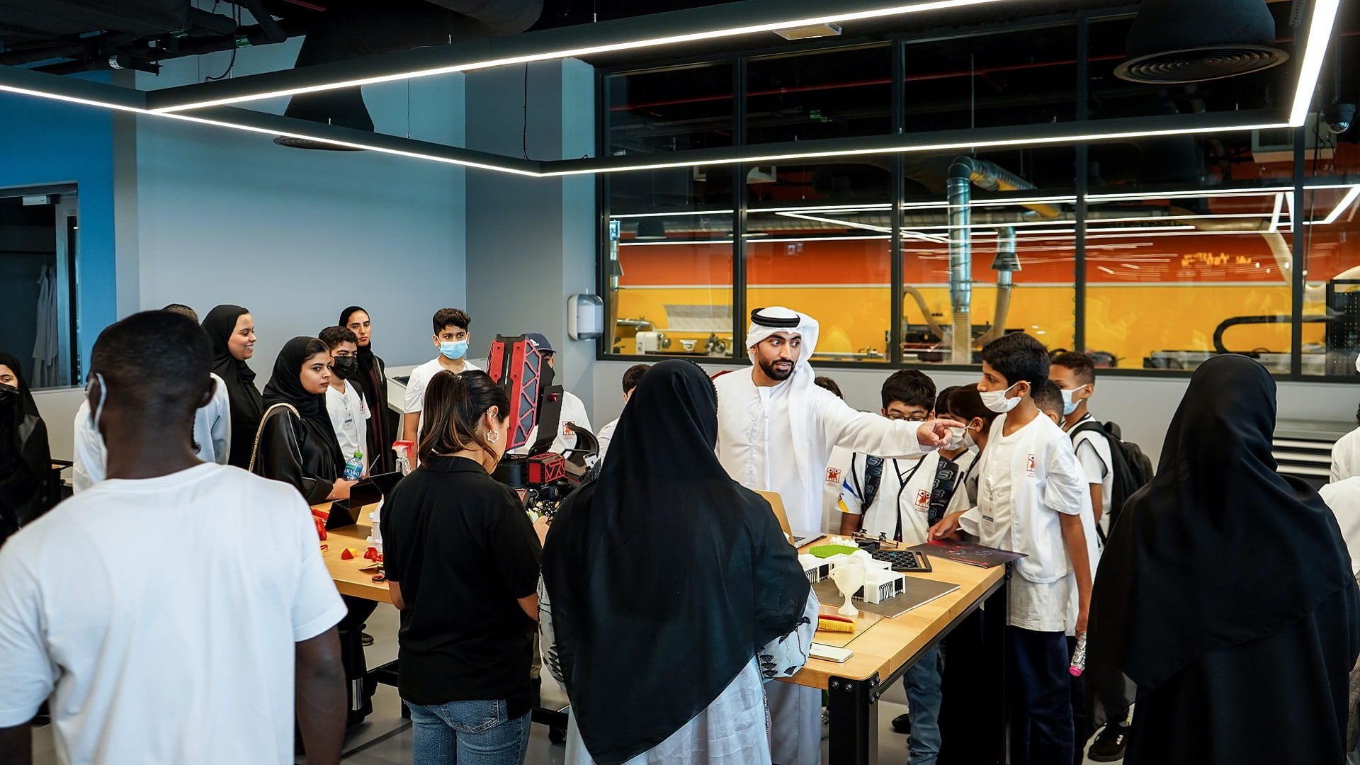 The visit also included a tour of the headquarters of the SRTI Park, where the outstanding achievers visited the Middle East Test Center for Smart Manufacturing (also known as additive manufacturing), the business center of the Maker Space complex called "Sharjah Laboratory", companies specialising in Agricultural Research, the house that was built using 3D printing techniques and futuristic projects of smart and green transportation.