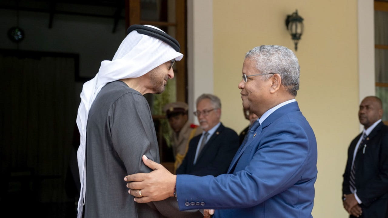 At the beginning of the meeting, Wavel Ramkalawan welcomed President His Highness Sheikh Mohamed bin Zayed and the accompanying delegation. He praised the UAE's strong support to his country in many developmental areas and the assistance provided to Seychelles during the COVID-19 pandemic.