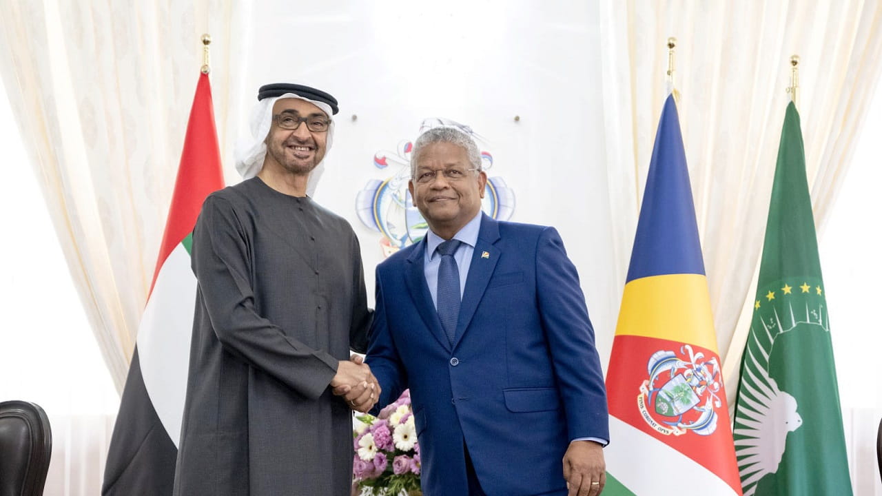 President His Highness Sheikh Mohamed bin Zayed expressed his appreciation for the warm welcome and hospitality, highlighting the friendly relations between the UAE and Seychelles and the progress it is making in various vital fields for the benefit of the two countries and their people.