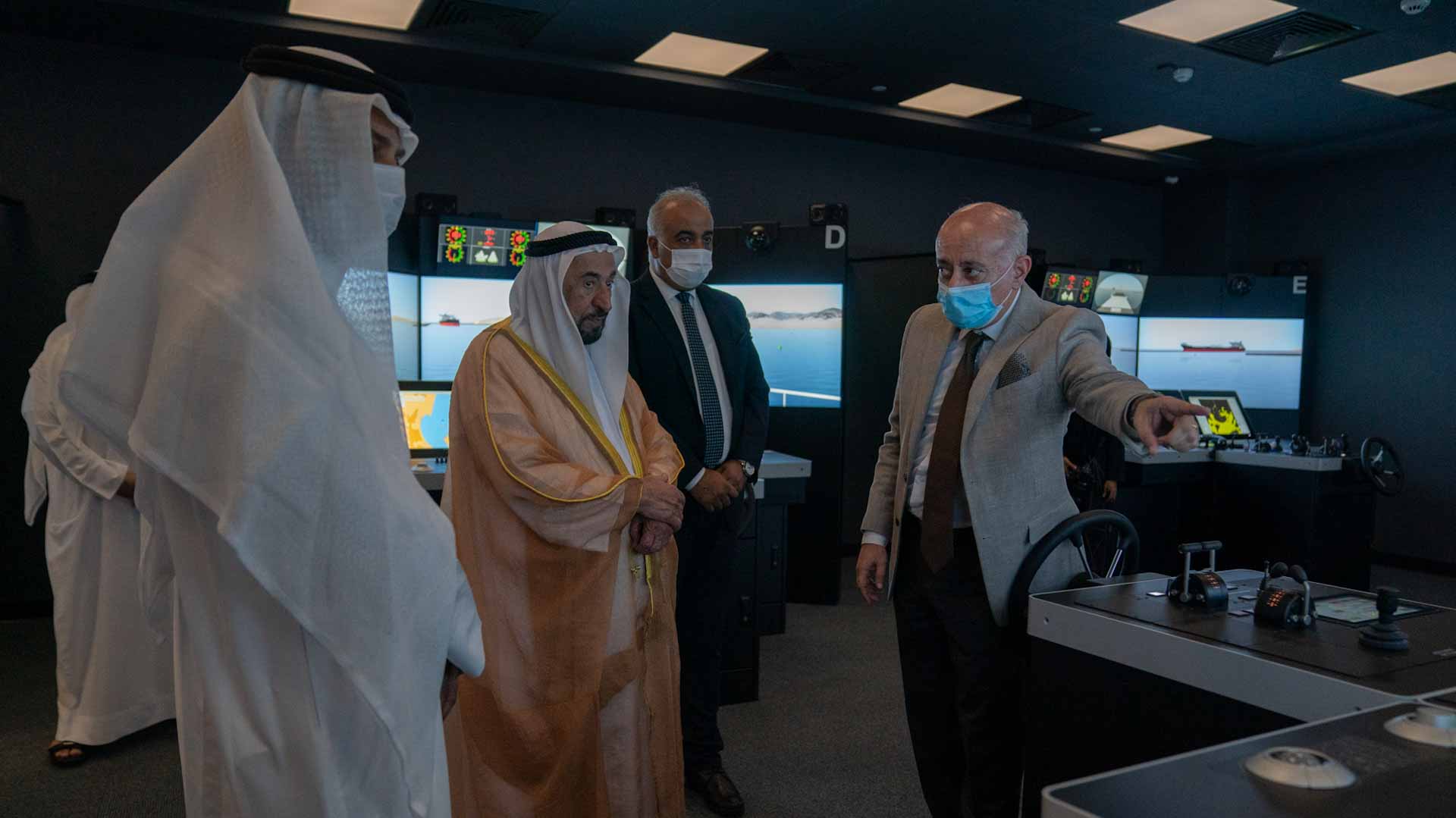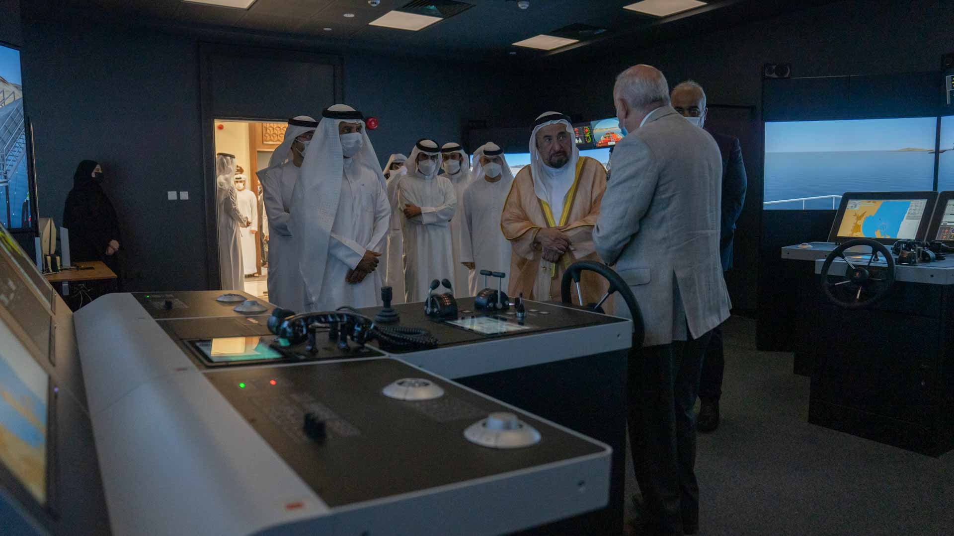 His Highness Sheikh Dr. Sultan bin Muhammad Al Qasimi visited a number of advanced scientific laboratories in Academy for the purposes of teaching and training students in different classrooms, as well as for the purposes of training specialists working in the fields of maritime transport.