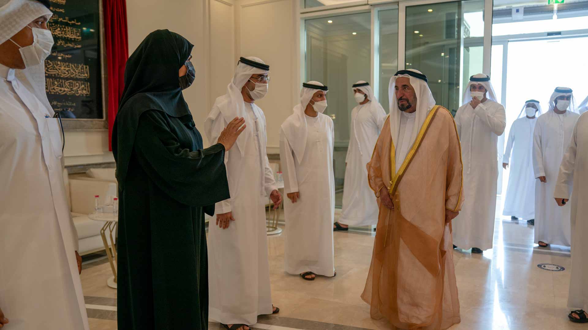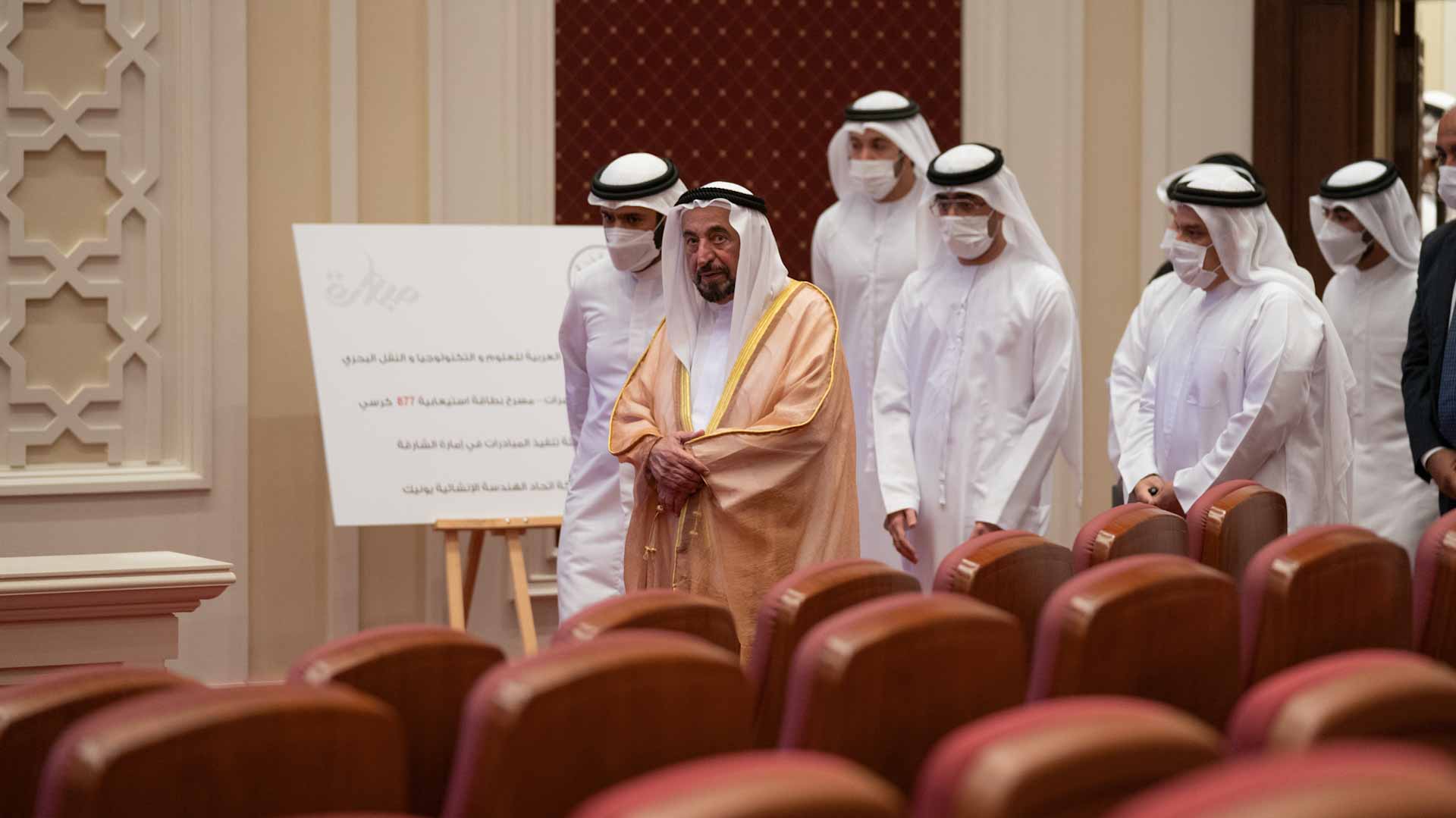 Sharjah Ruler was accompanied during the visit by Sheikh Khalid bin Abdullah Al Qasimi, Chairman of the Sharjah Ports, Customs and Free Zones Authority, Dr. Mansour bin Nassar, Head of the Legal Department of the Government of Sharjah, Engineer Salah bin Butti Al Muhairi, Head of the Initiatives Implementation Authority "Mubadara", Mohammed Obaid Al Zaabi, Head of the Protocol and Hospitality Department, and Dr. Muhadtha Al Hashemi, Chairman of the Sharjah Private Education Authority, and Dr. Hashem Abdullah Al Zaabi, Director of AASTMT in Sharjah.